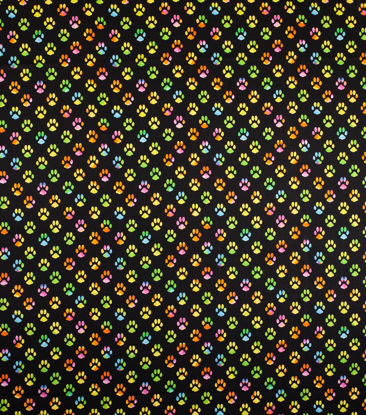 • Novelty Cotton Fabric Tie Dye Paws Black