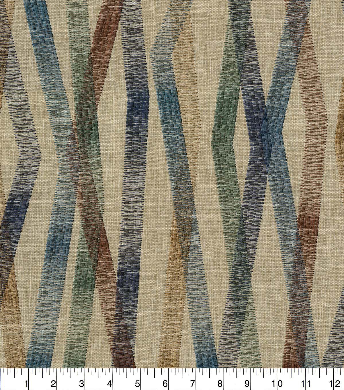 A modern geometric, Zig Zag Embroidery ports colorful linear bands that playfully intersect with one another. Each band is comprised of an embroidery stitched in a prominent zig zag pattern, creating a distinguishing ombre effect. Create throw pillows, window accents, bedding, tote bags and more with this versatile patterned home decor fabric from Novogratz.