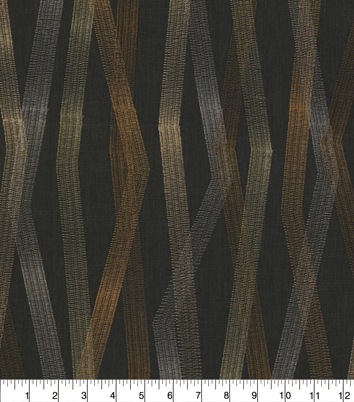 A modern geometric, Zig Zag Embroidery ports colorful linear bands that playfully intersect with one another. Each band is comprised of an embroidery stitched in a prominent zig zag pattern, creating a distinguishing ombre effect. Create throw pillows, window accents, bedding, tote bags and more with this versatile patterned home decor fabric from Novogratz.