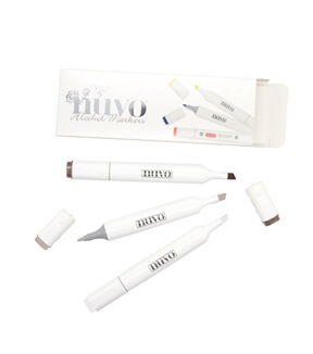 Nuvo-Creative Pen Collection. These dual tip pens provide an innovative and professional finish to a diverse range of projects, The smooth contemporary feel of the pen is comfortable and easy to control. The broad tip produces a wide mark to fill larger areas, while the fine tip is ideal for the delicate details. Made with and alcohol based ink to produce an effortlessly smooth color. This package contains three 5.75 inch long pens in assorted colors. Conforms to ASTM D 4236. Comes in a variety of colors. Each sold separately. Imported.