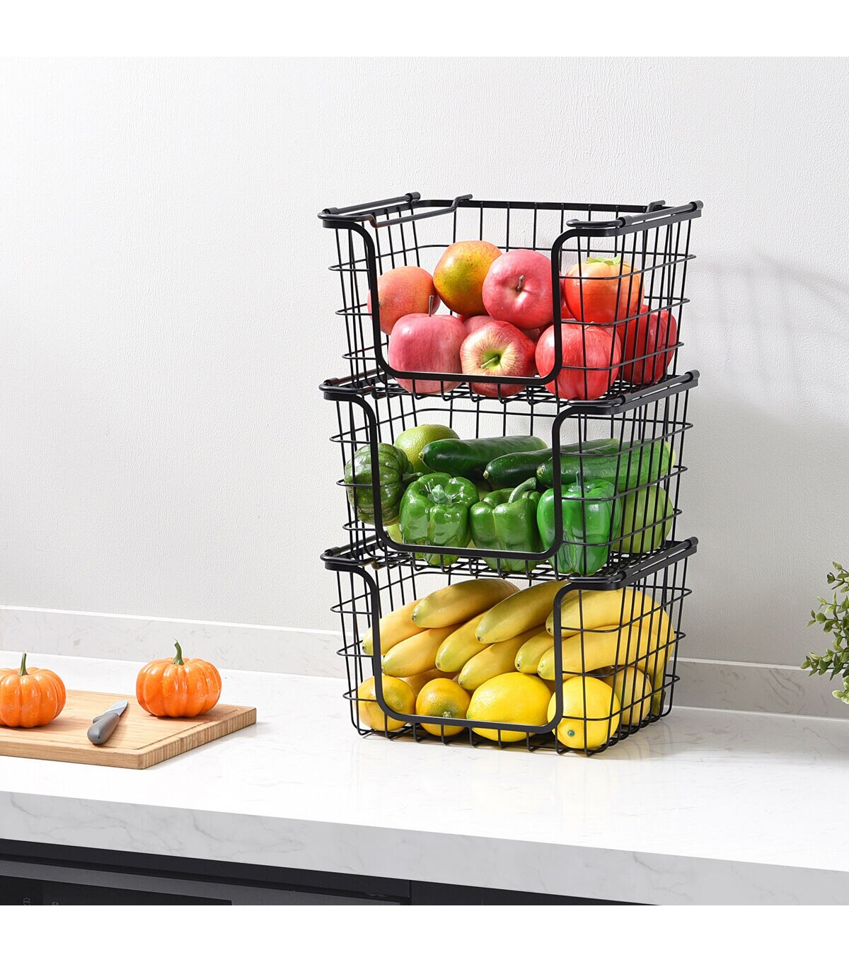 Store your items in style with the Stackable Metal Wire Basket! Use these storage bins to organize any space from your kitchen and pantry to your closet and bathroom. These beautiful baskets meet all of your storage needs while making your spaces organized and stylish. Turn your house into a home with these versatile storage baskets that double as décor. No counter space? No problem! You can hang these under a shelf to minimize messes on the counter. These deep baskets can hold a variety of produce and kitchen accessories while looking great in any room.