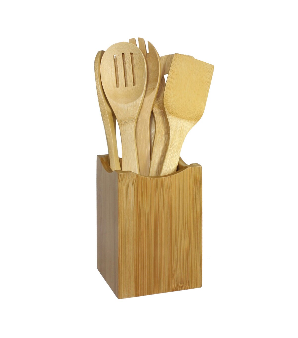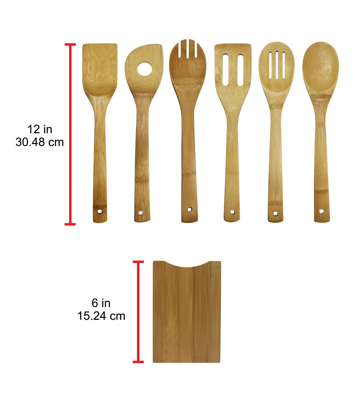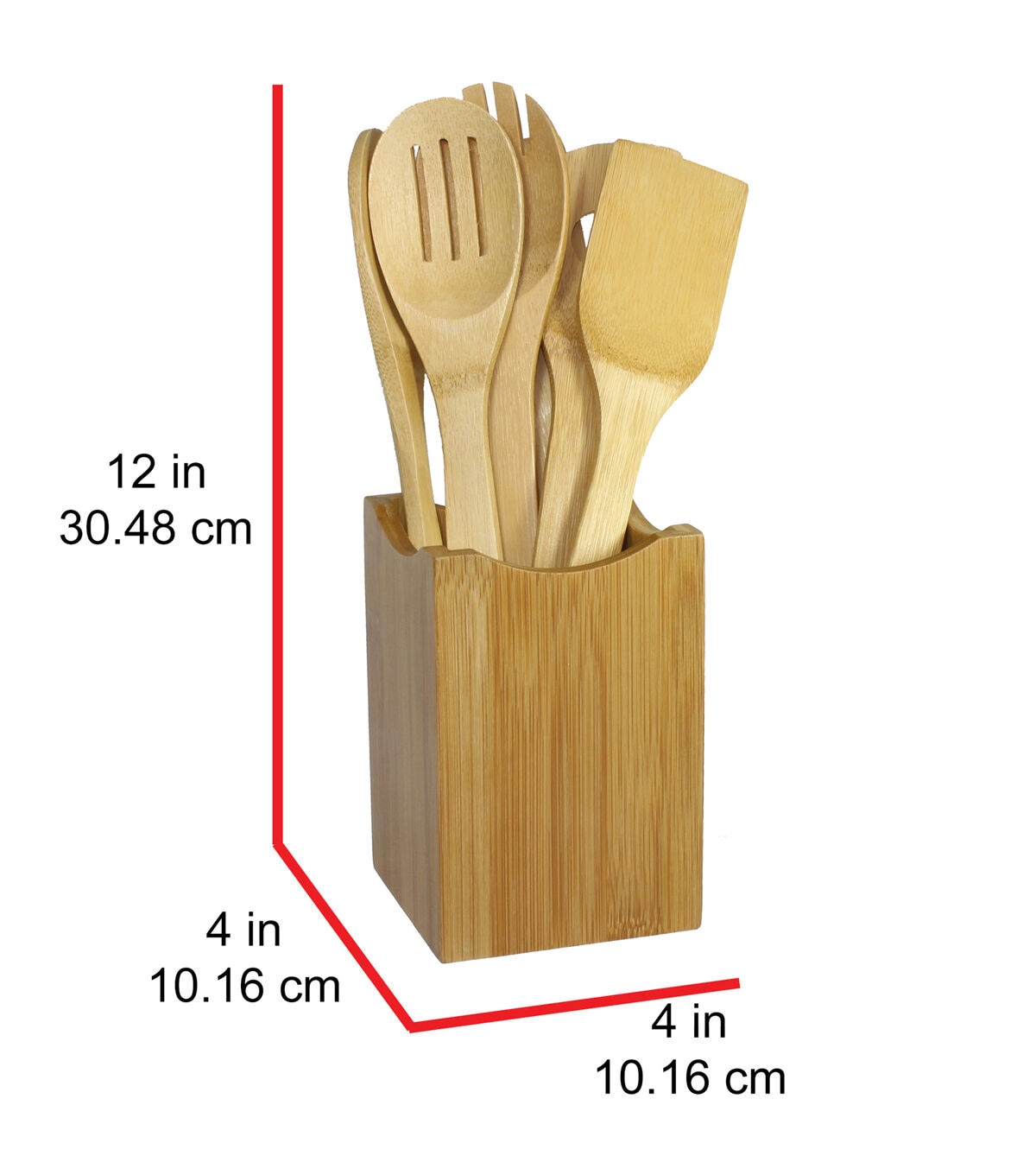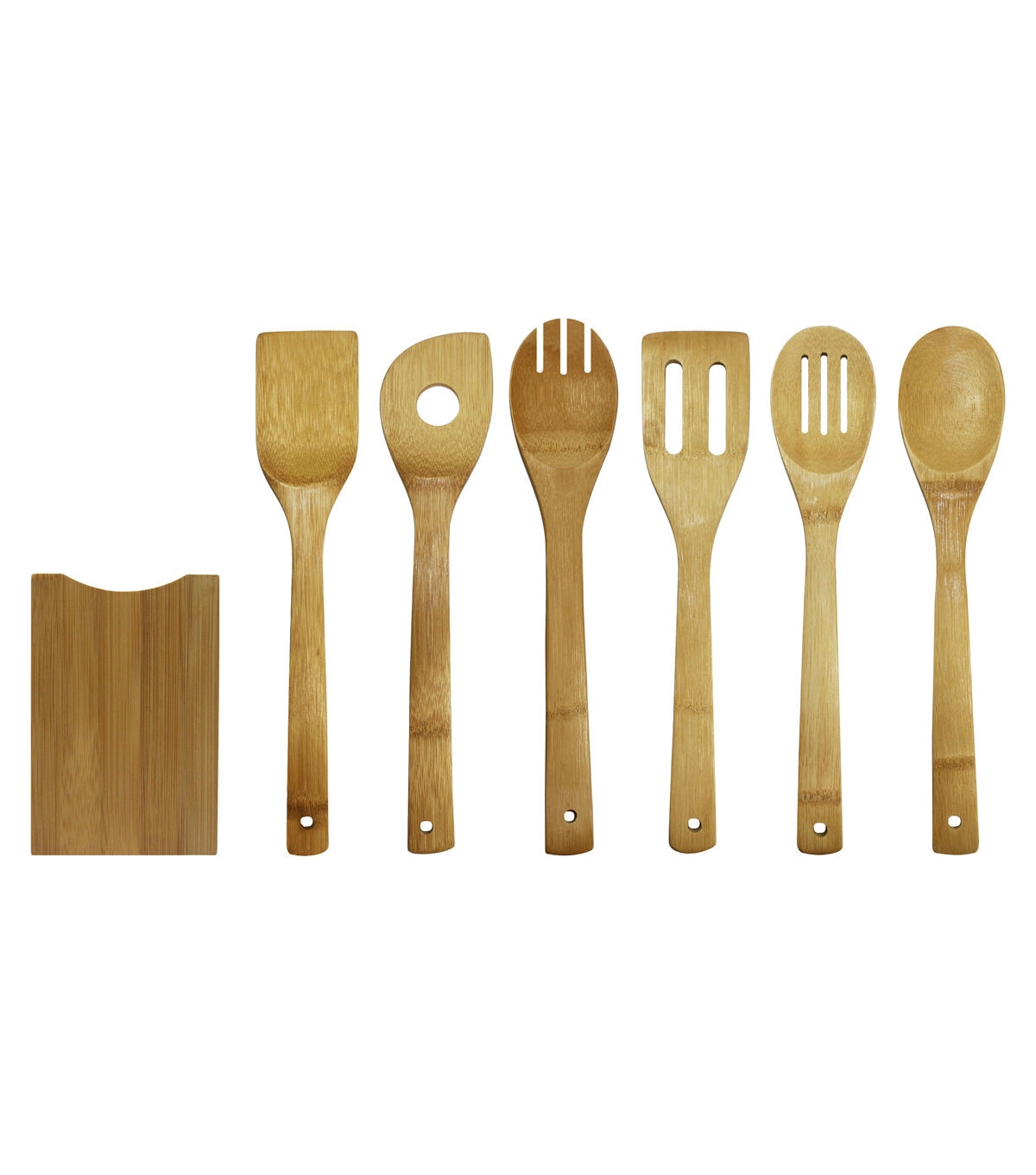 Whether you are replacing an old set of bamboo utensil or adding more to your cooking gadgets, this 7 Piece Bamboo Cooking Utensil Set from Oceanstar will do the job. The set includes a Turner Spatula, a Rounded Fork, a Single Hole Mixing Spoon, a Slotted Spatula, a Slotted Spoon, a Bamboo Spoon, and a Bamboo Holder. This is a perfect accessory for any kitchen lover. Whether you are a professional cook or beginner cook, this 7Piece Bamboo Cooking Utensil Set will be a great prep tool. Present this cooking set to someone special or anyone who loves to cook as a wonderful housewarming or holiday gift. Easy to maintain; simply wash with mild soap and water, and dry thoroughly. Bamboo holder: Wipe clean with damp cloth. What’s in the Box: one Turner Spatula, one Rounded Fork, one Single Hole Mixing Spoon, one Slotted Spatula, one Slotted Spoon, one Bamboo Spoon, and one Bamboo Holder.