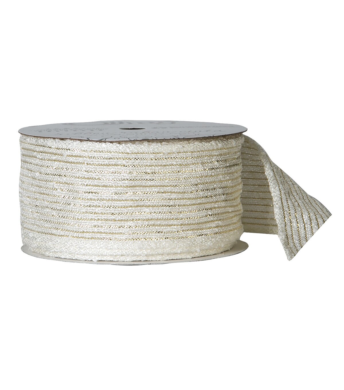 • Offray 1.5"x9' Metallic Stripe Woven Ribbon Antique White and Gold