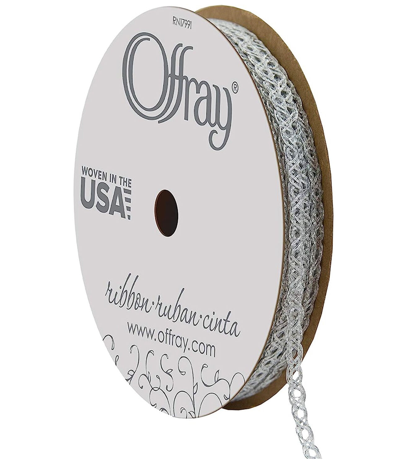 • Offray 1/8" x 12' Metallic Silver Quasar Braided Ribbon