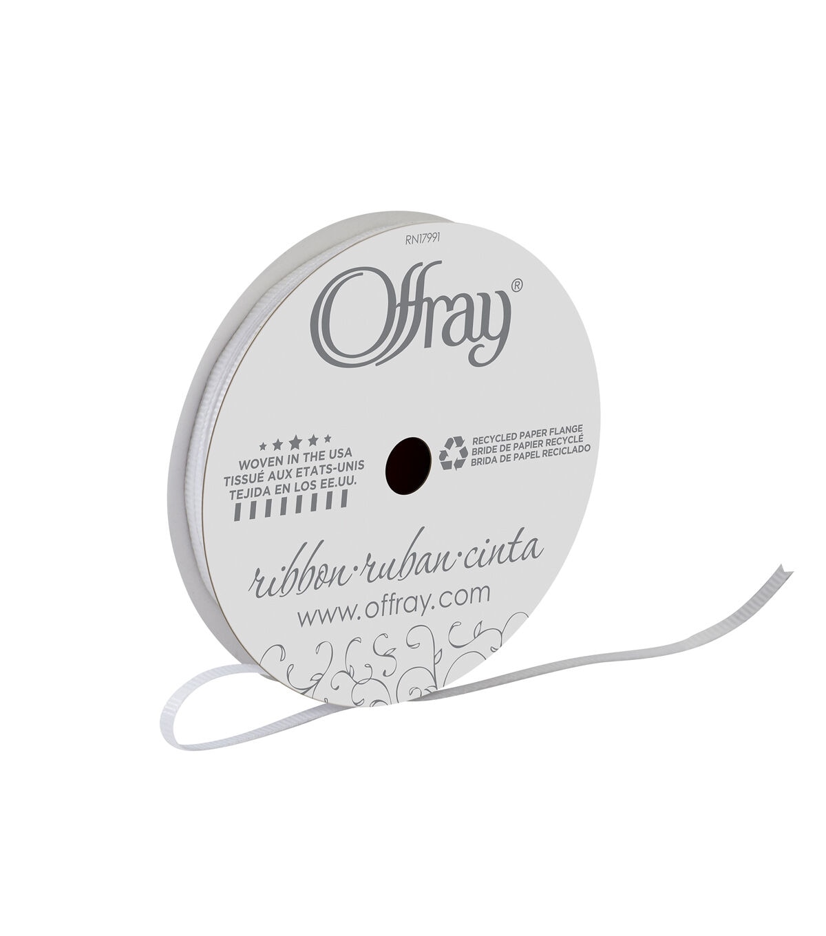 • Offray 1/8" x 12' White Grosgrain Ribbon