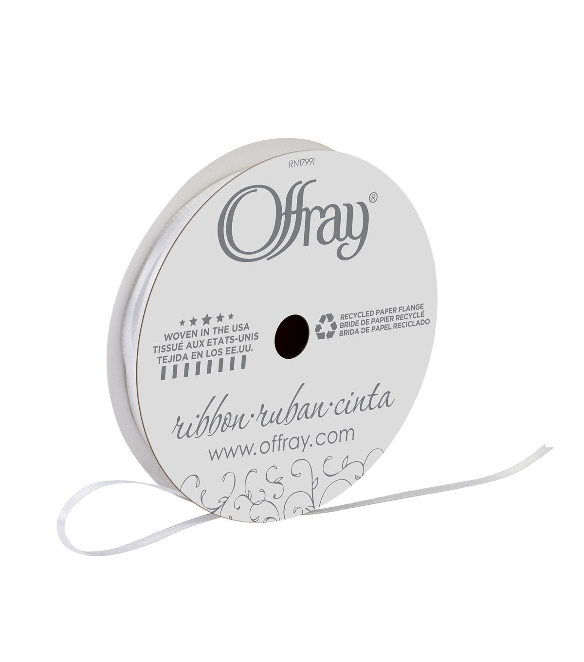 • Offray 1/8" x 12' White Satin Ribbon