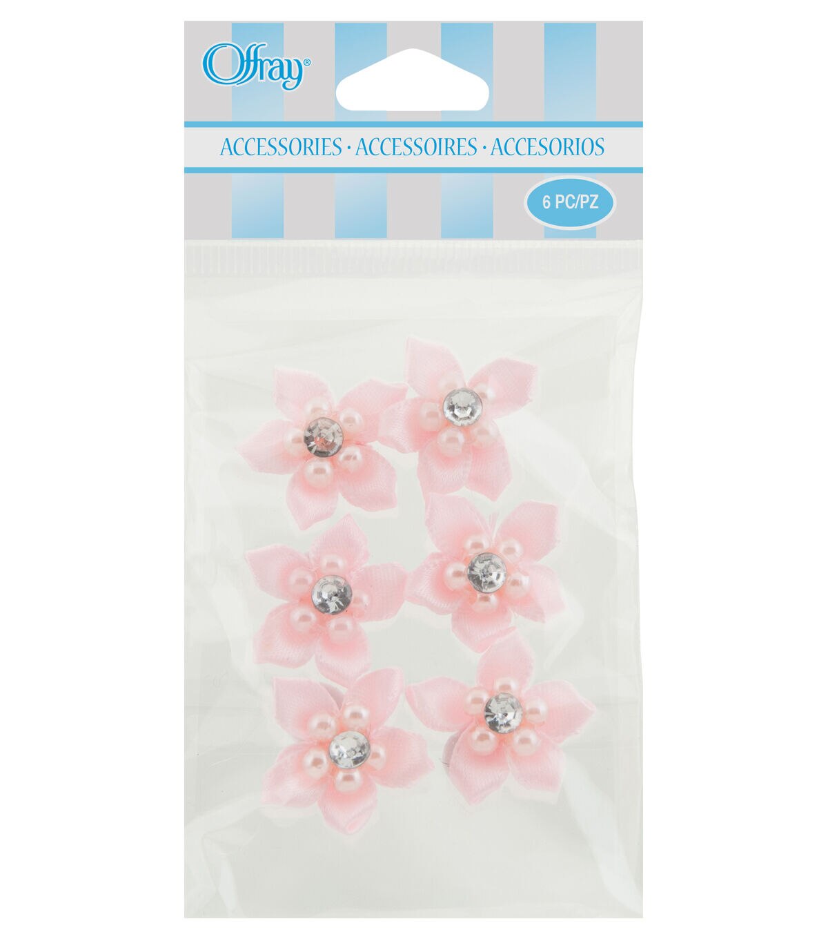 • Offray 1" Light Pink GemFlowers Ribbon Accents 6pcs