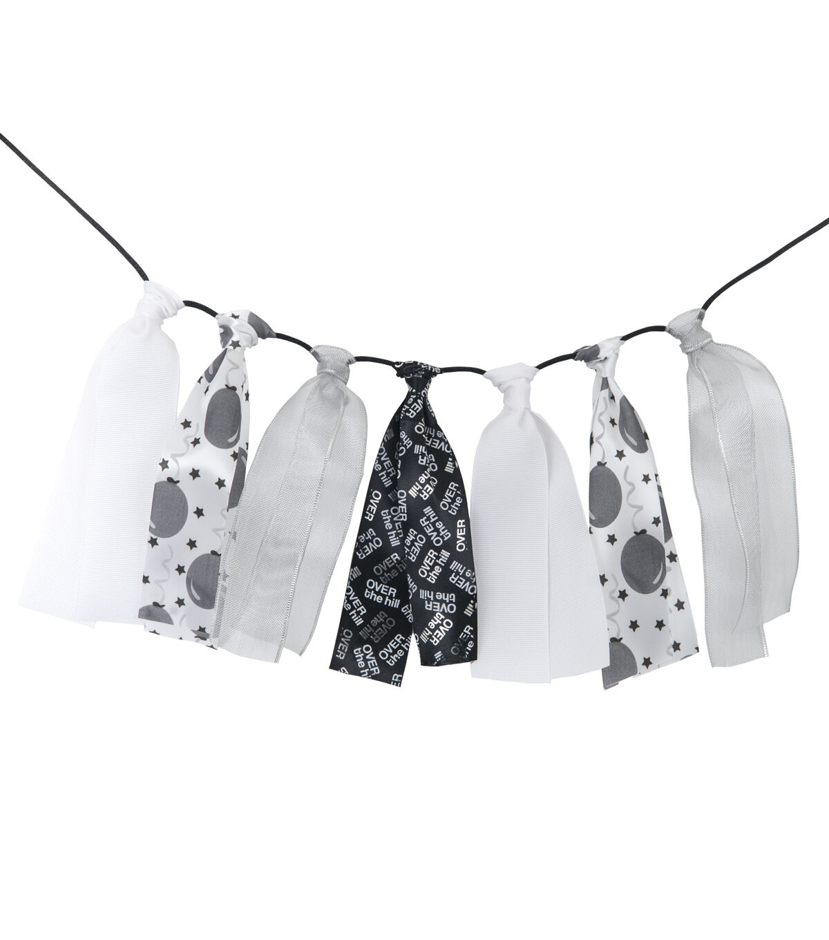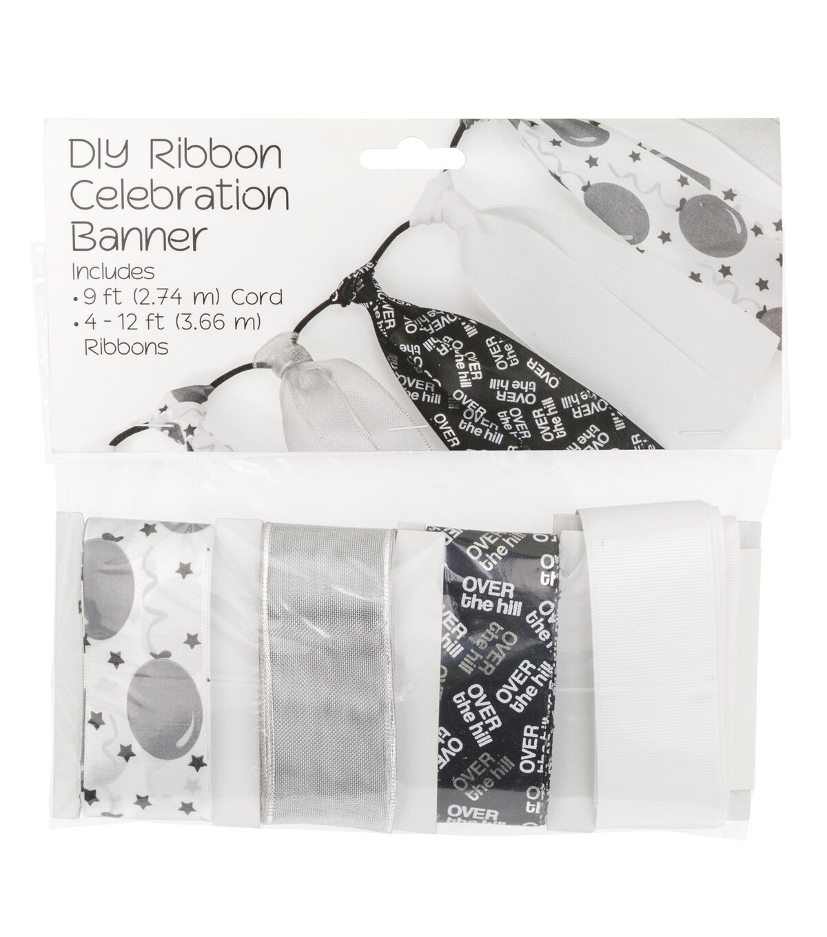 Pep up your party decor with a banner made using the Offray DIY Ribbon Banner Kit-Over the Hill. This banner kit includes a cord, ribbons in four unique designs, and easy instructions. Use its cord and color-coordinating ribbons to create a charming banner. An assortment of visually appealing designs, this DIY ribbon banner will make a lovely backdrop for photographs on your special occasions.