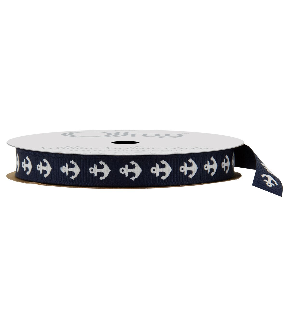 • Offray 3/8" x 9' Navy & White Anchor Grosgrain Ribbon