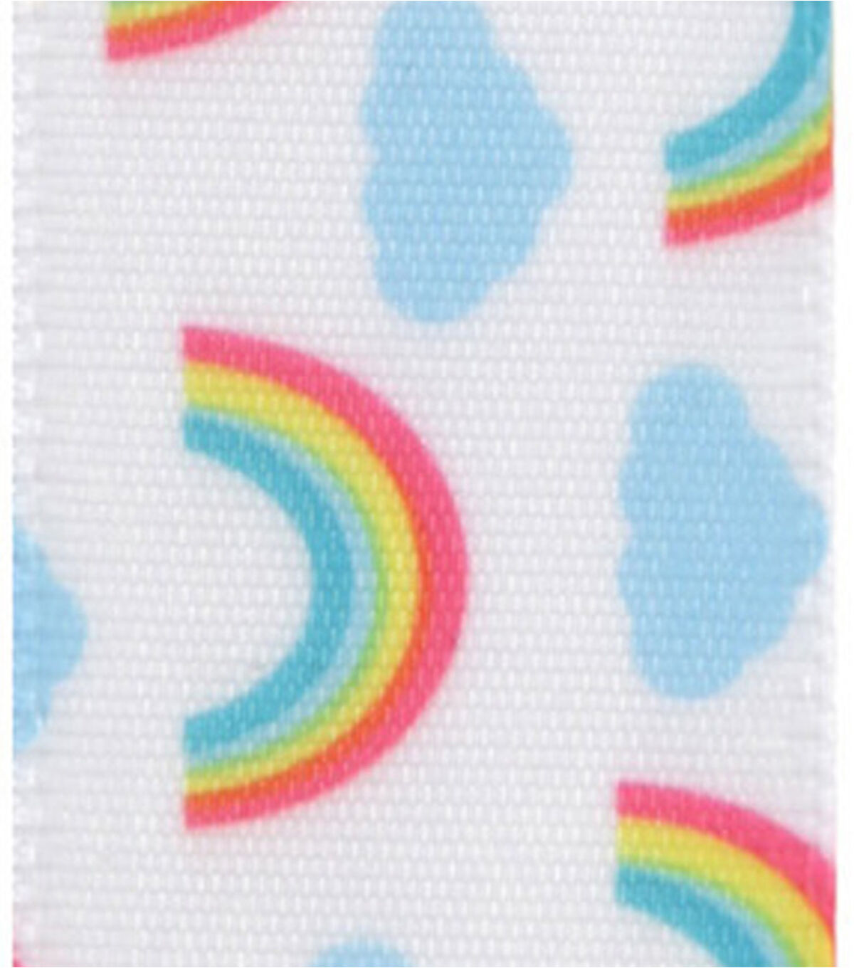 • Offray 7/8" Rianbows on White Single Faced Satin Ribbon