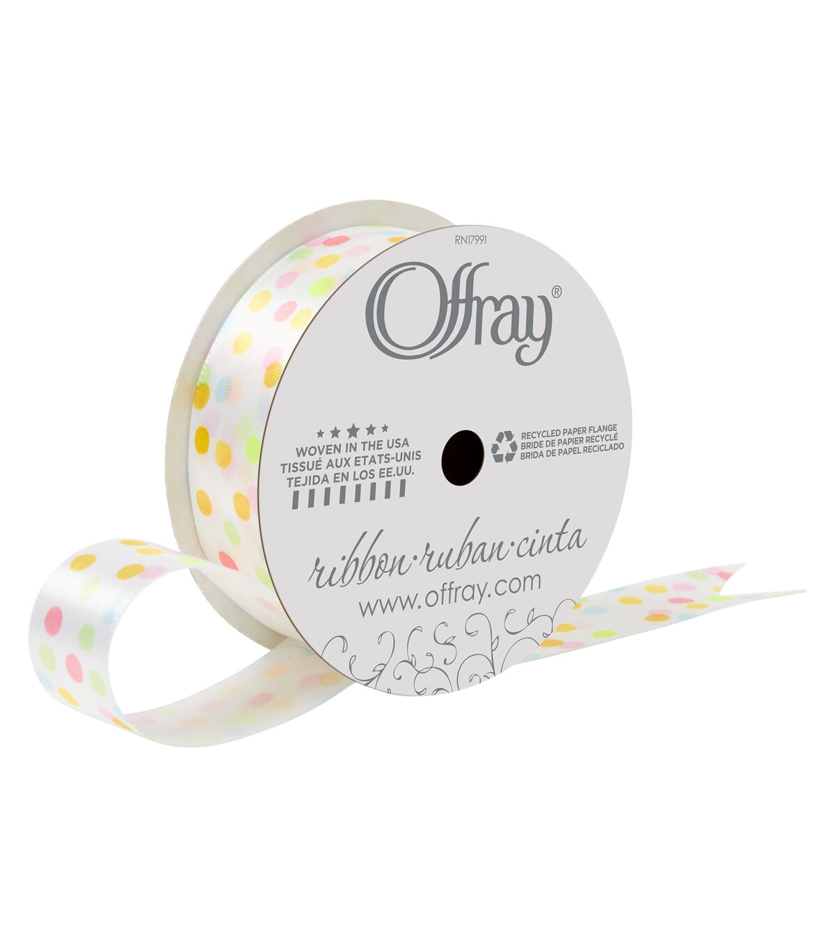 • Offray 7/8"x9' Confetti Dots Single Faced Satin Ribbon Multi