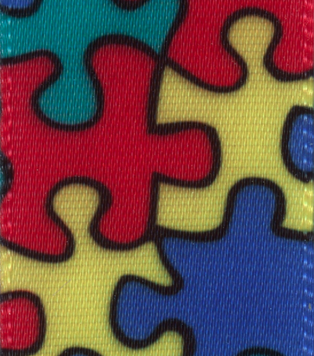 • Offray 7/8"x9' Jigsaw Abstract Single Faced Satin Ribbon Blue