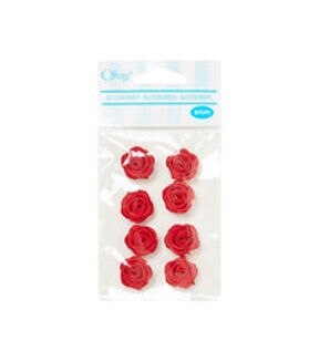 The Offray Mini Ribbon Rose Accessories - Red will make a great addition to your craft supplies. This pack includes eight ribbon roses sporting a bright red shade. You can use them to adorn photo frames, wreaths wicker baskets, party favor bags and papercrafting projects. They will also be perfect to adorn handmade hair accessories for your little one.