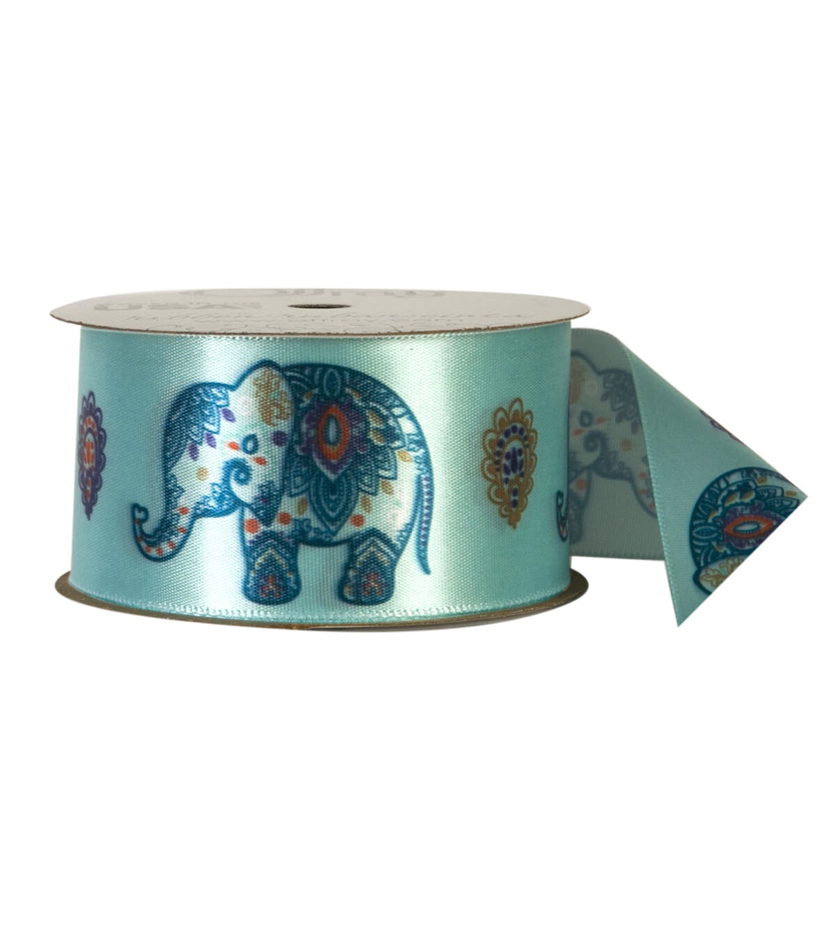 • Offray Grosgrain Ribbon 1.5''x9' Blue Bohemian Elephants
