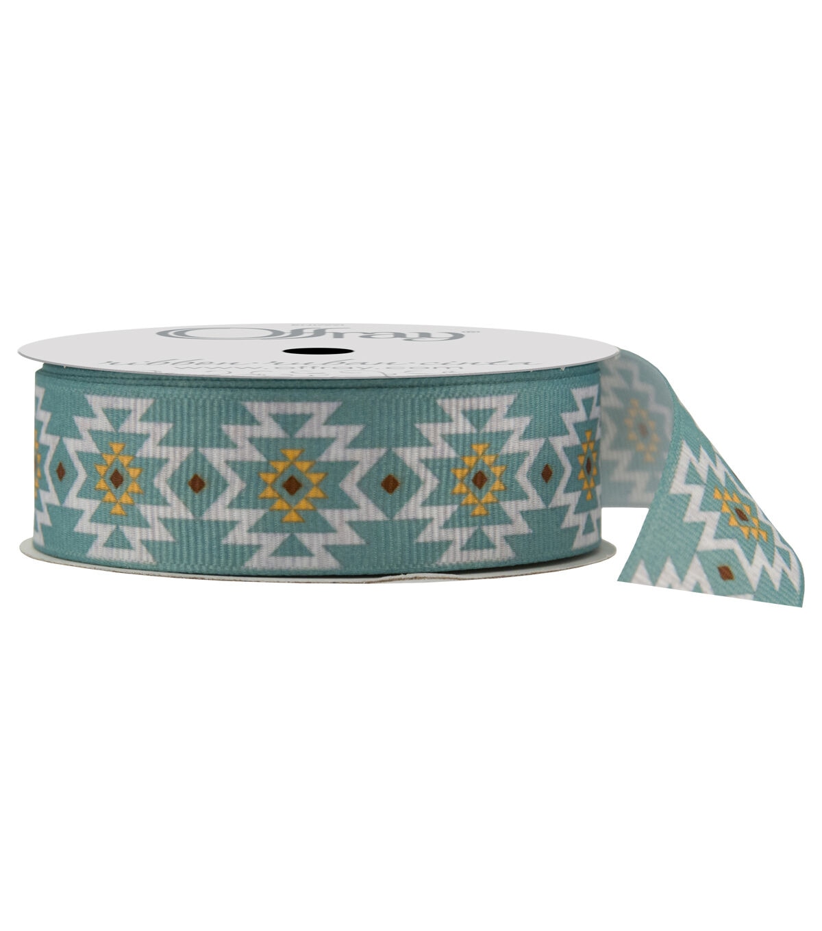 • Offray Grosgrain Ribbon 7/8''x9' Aztec Print on Turquoise