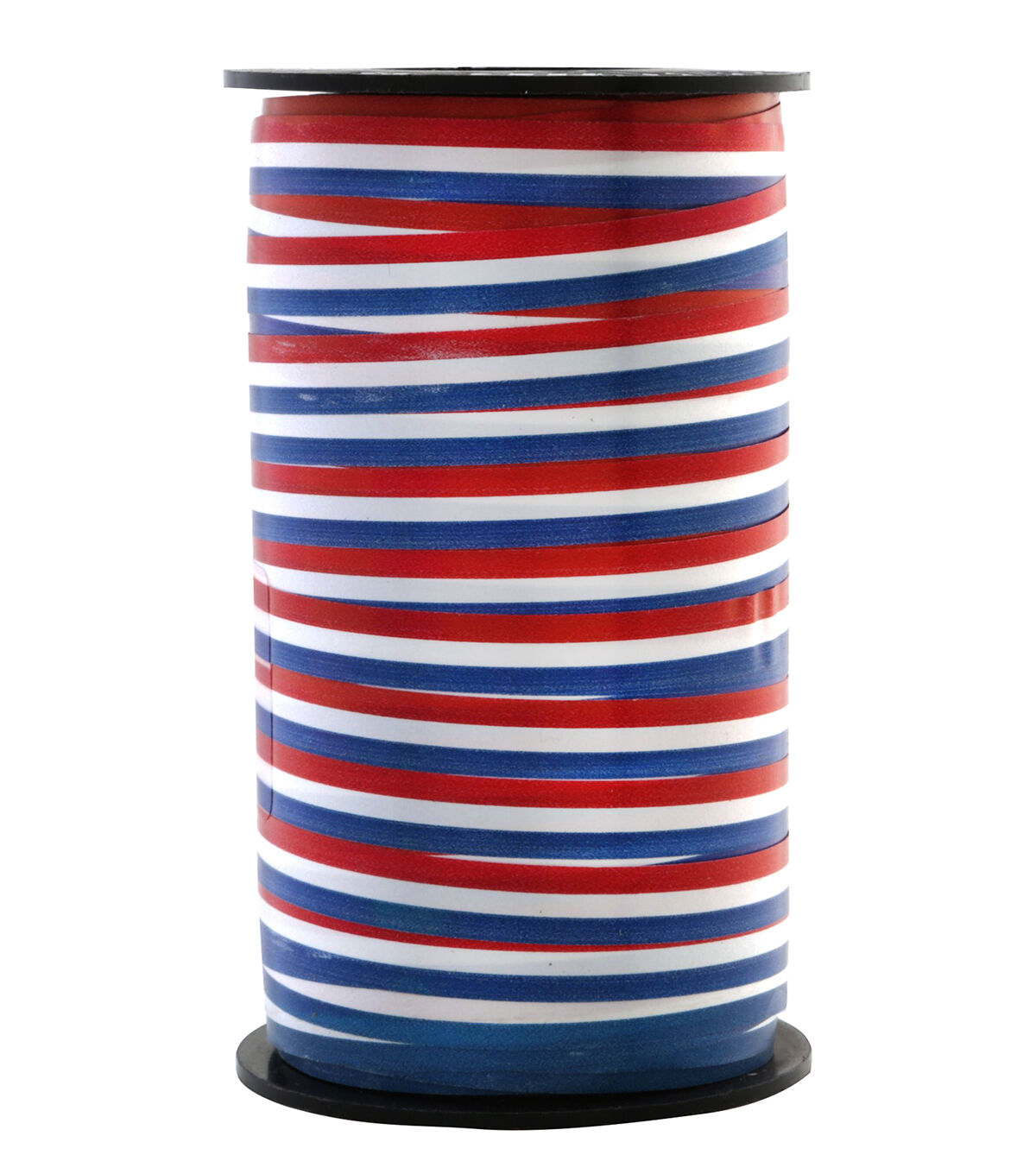The Offray Patriotic Curling Ribbon-Red, White & Blue Stripes will amp up the visual appeal of your DIY projects by adding a patriotic touch. Hang it creatively as a garland along your mantel or cabinet, or use it to create a wreath for the front door.