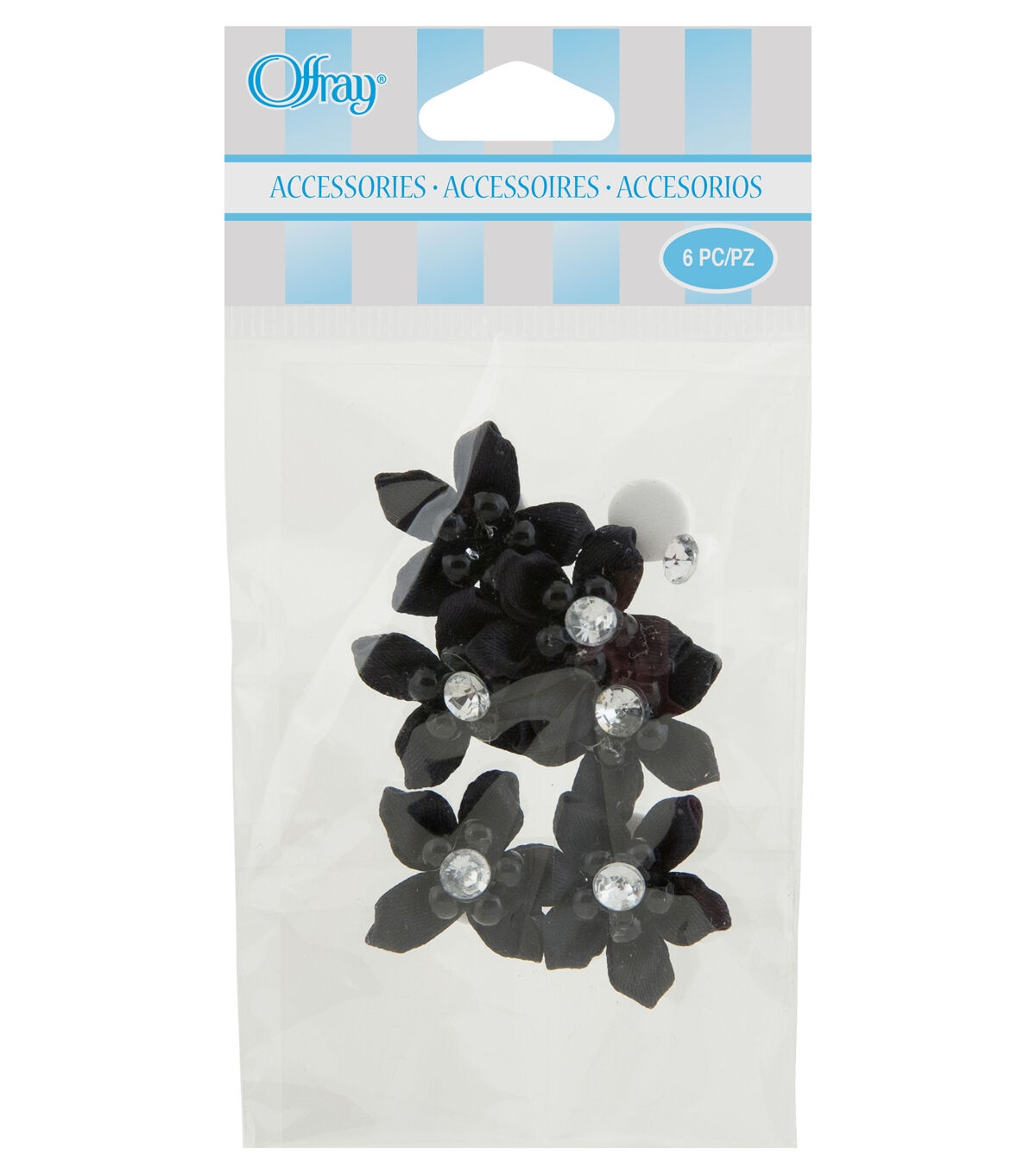 • Offray Ribbon Accents Black Flowers with Gems 6pcs