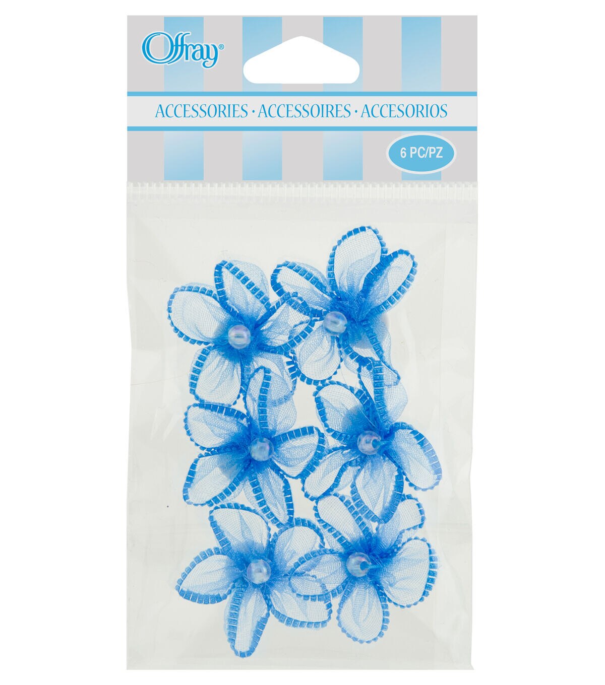 Offray Ribbon Accents Sheer Blue Flowers 6pcs