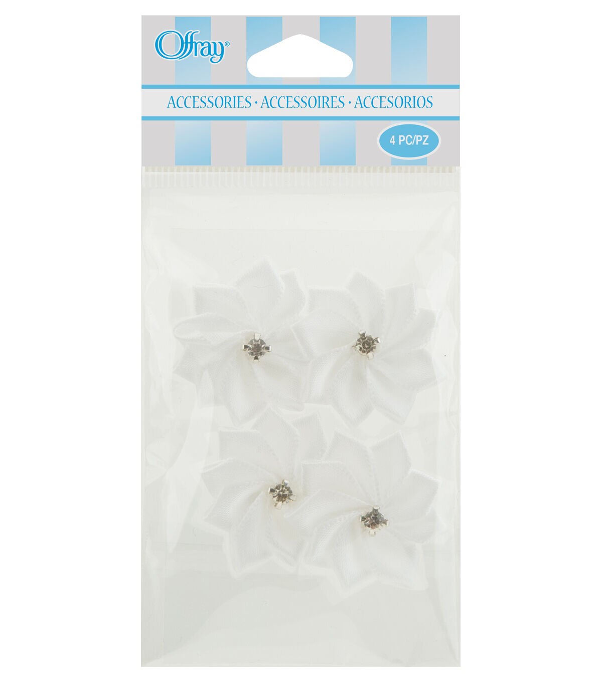 • Offray Ribbon Accents White Flower with Rhinestone Center 4pcs