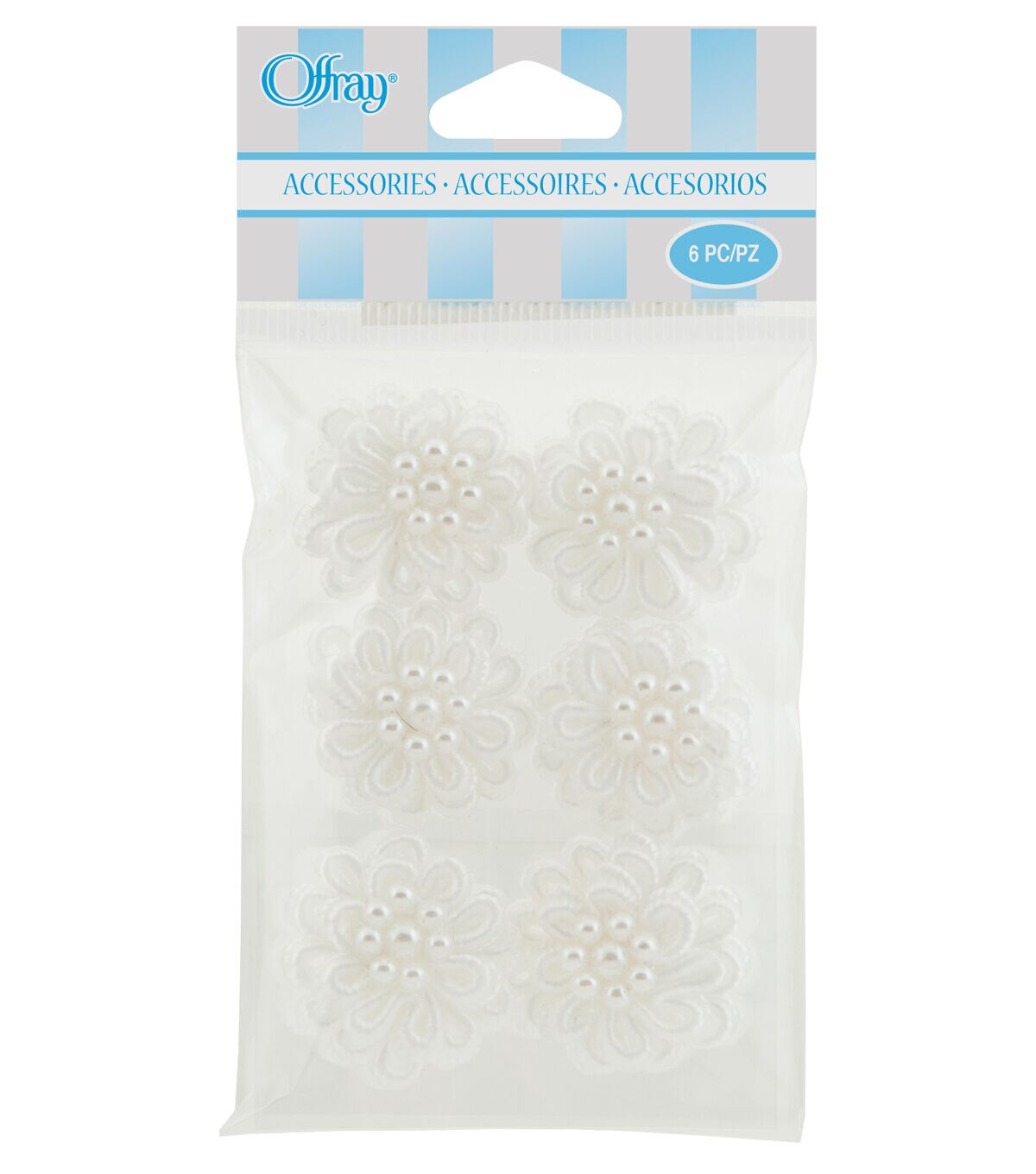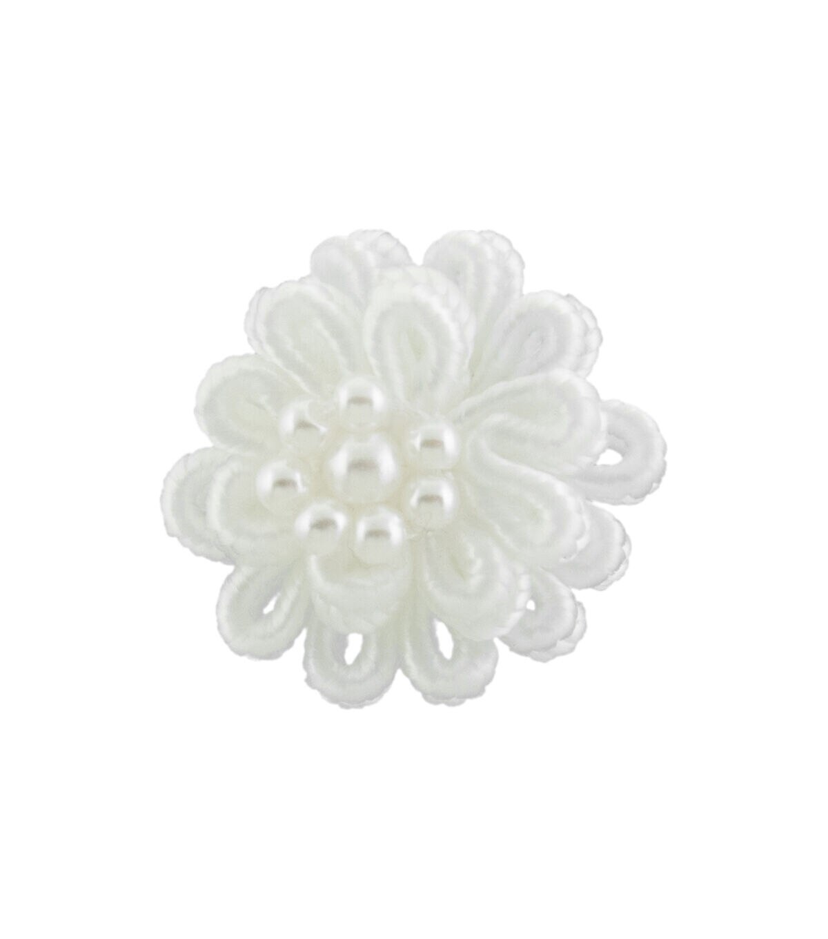 • Offray Ribbon Accents White Loop Flowers with Pearls 6pcs