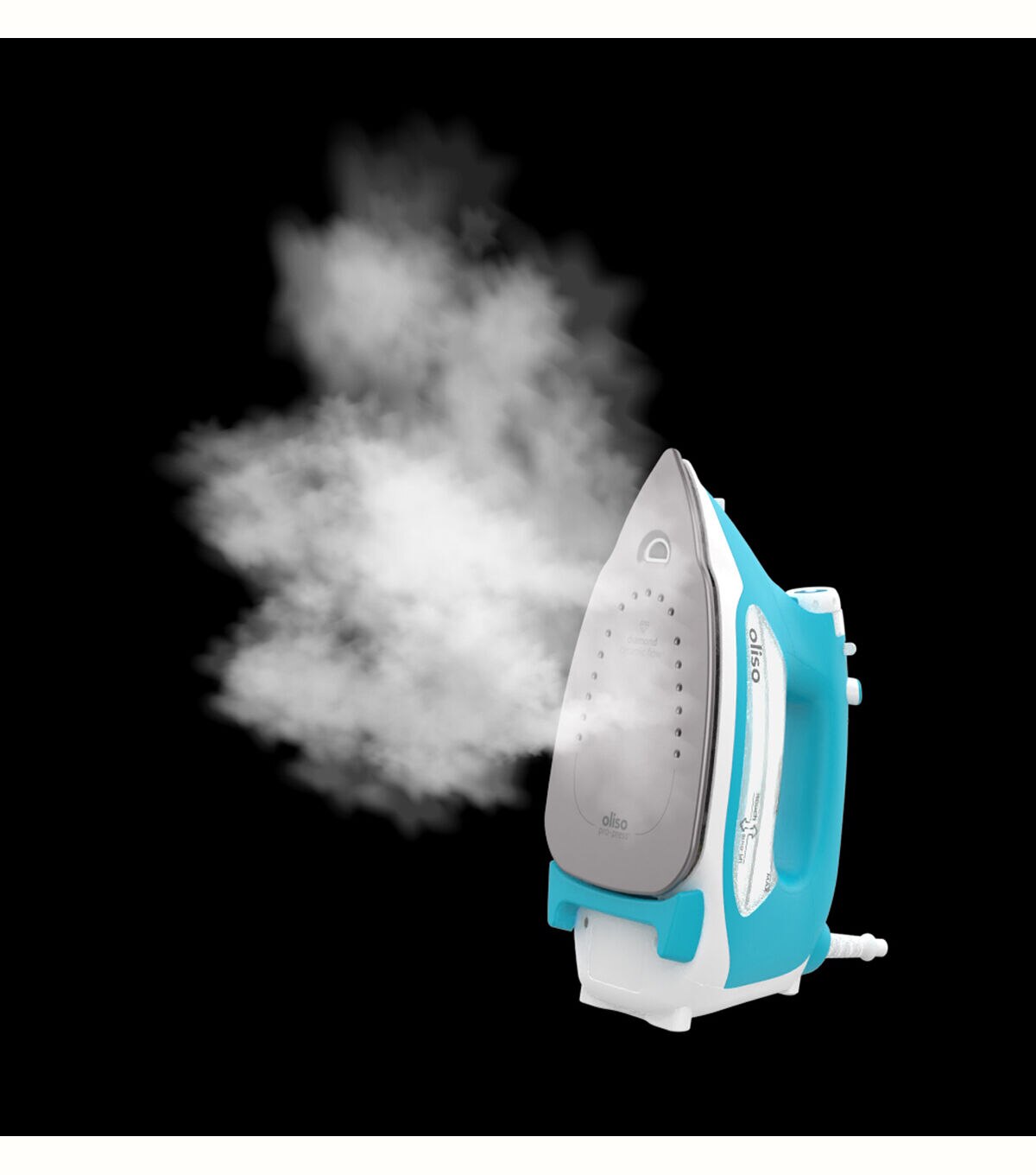 - NEW Diamond ceramic-flow soleplate with pro-press core: superior heat, durability, and non-stick, easy-clean even in the stickiest of situations.Smart sensor extended auto shut-off: Extended 30 min standby while working for your convenience, 30 second safety auto shut-off if tipped over.2-inch detailer Tip: Perfect for seams, bias tape + tight corners. Press under and over pleats, pockets, cuffs and collars with ease.Longest cord in class: 12' with a 360 degree pivotLargest water tank in class: (12.7 oz/375ml) for heavy steam usage with easy side fill and fill cup included.Built-in spray: Stubborn wrinkles? No problem. My Built-in spray is a powerful wrinkle buster.Take me away: I'm compatible with Oliso accessories for storage and travel.3 year warranty: You're part of the family with Oliso's friendly customer service.Enhanced quality features: Anti-drip system - Prevents spitting and leaking while the iron is hotNEW Anti-Calc Technology: The new Anti-Calc cartridge prevents hard water buildup and keeps your iron working longer and stronger.Auto-Clean SystemPowerful pressing: Quick Heating - 1800 watts of powerNEW Rapid-response Triple play steam: powerful vertical and horizontal steam removes the toughest wrinkles.