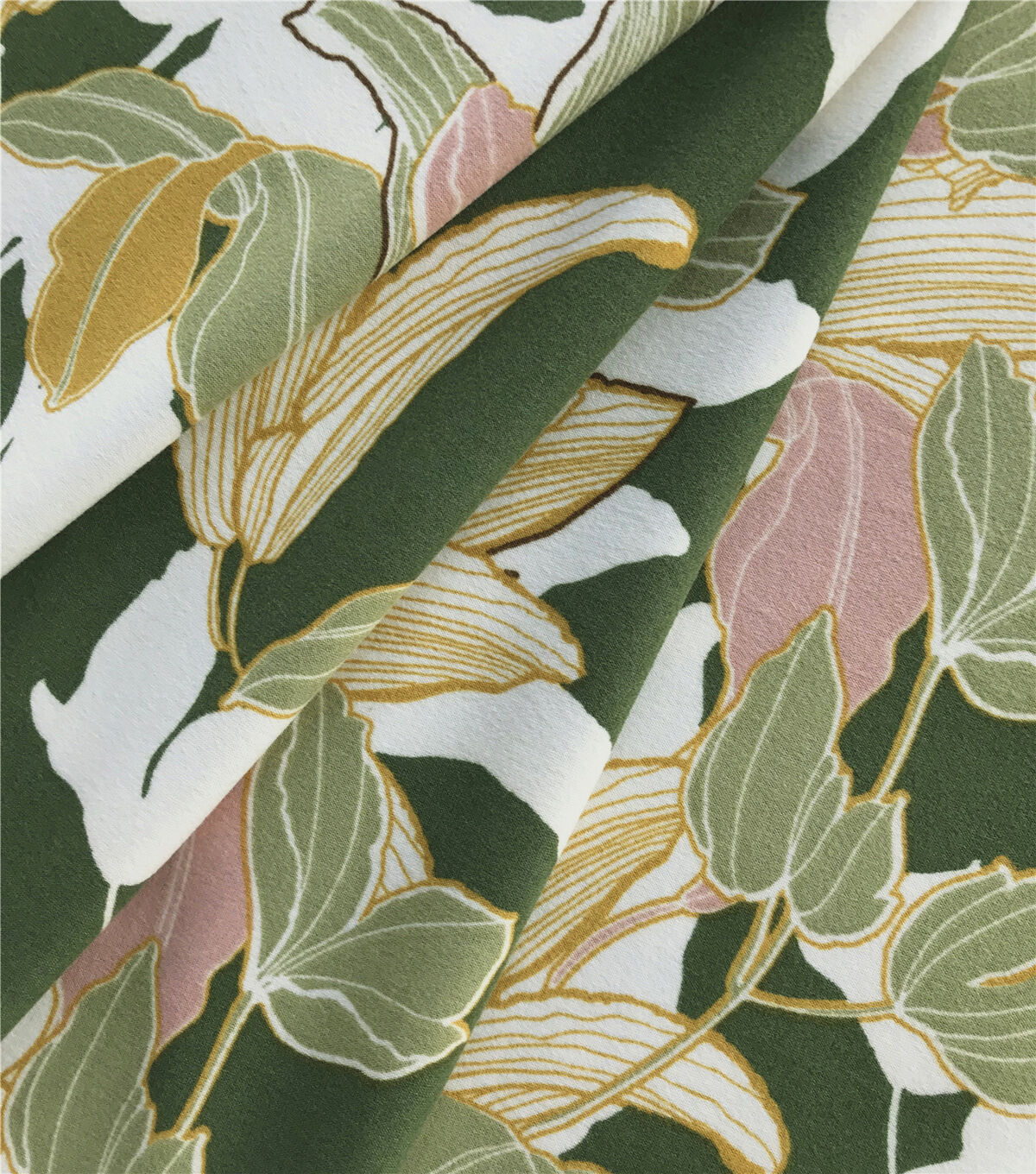 • Olive Leaves Double Brush Jersey Knit Fabric