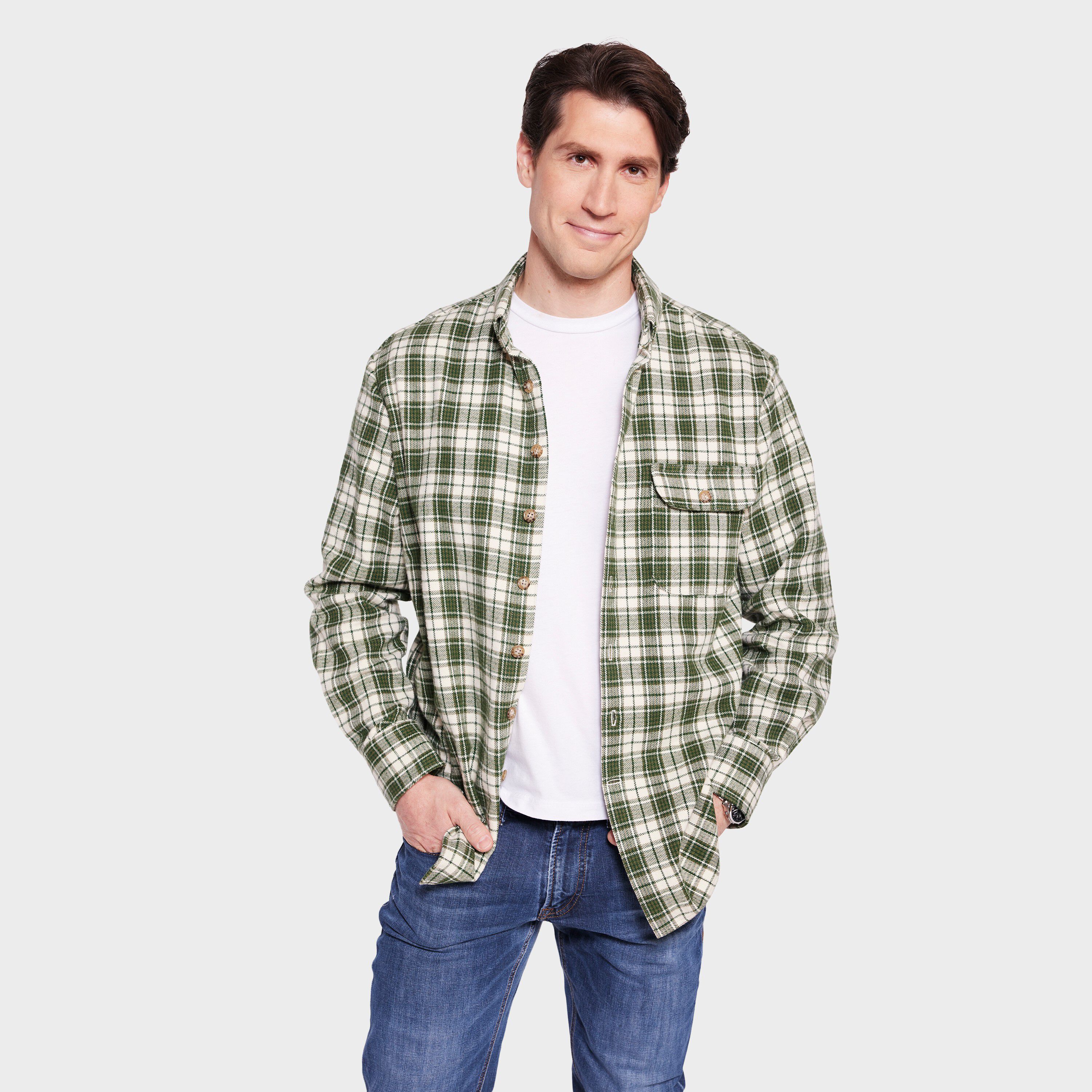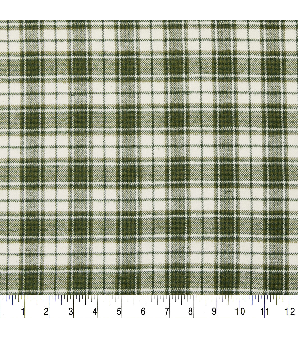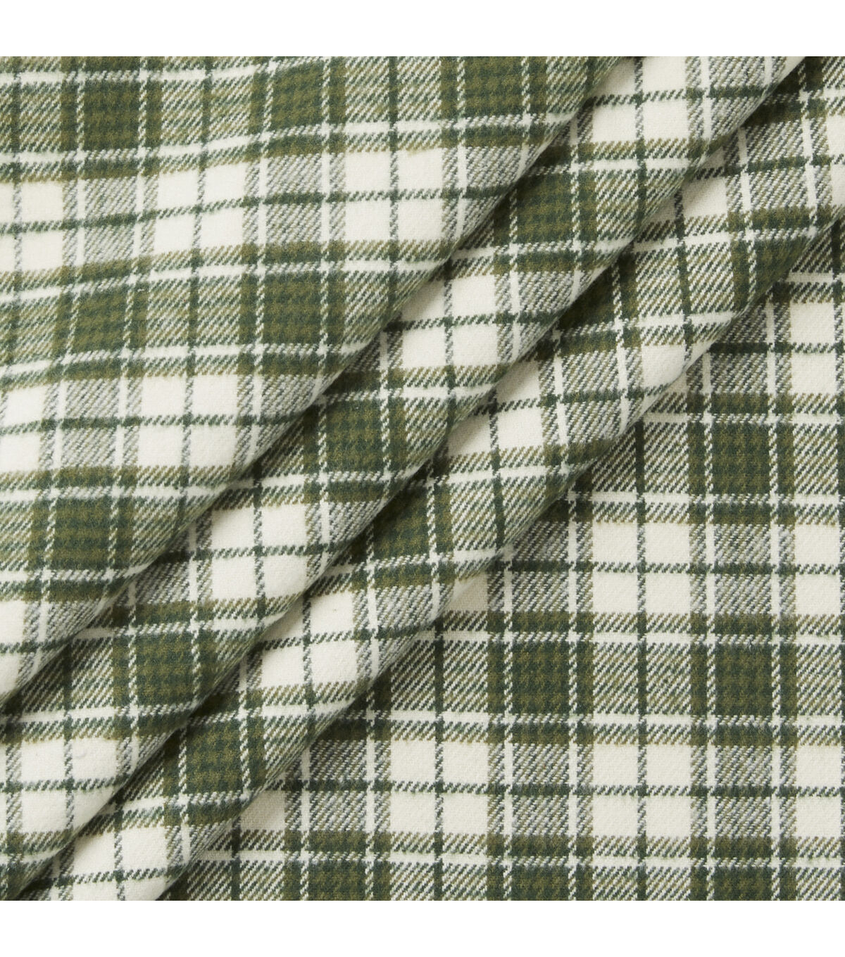 Olive White Plaid Brushed Cotton Shirting Fabric