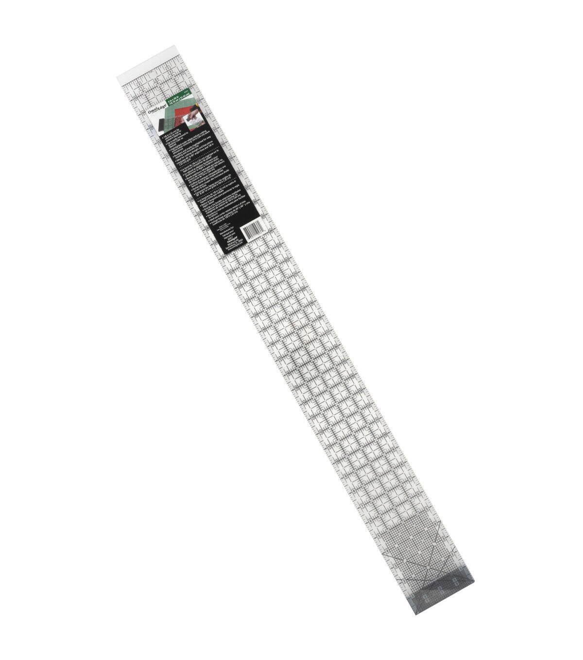 Add the Omnigrid Non-slip Rectangle Quilting Ruler with Removable Lip to your craft kit. The pack contains one 4 x 36-inch straight acrylic ruler with markings and instructions in black. This non-slip quilter's ruler provides accuracy while marking, measuring and cutting pieces for your needlework projects, particularly straight and biased pieces. It also features lines that indicate 40-degree and 60-degree angles and highlighted outer edges reduce cutting errors when trimming 0.25-inch seam allowances. The 0.125-inch removable lip adheres to the mat and prevents slippage.