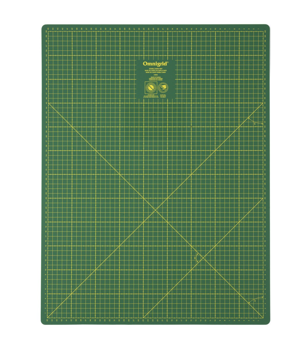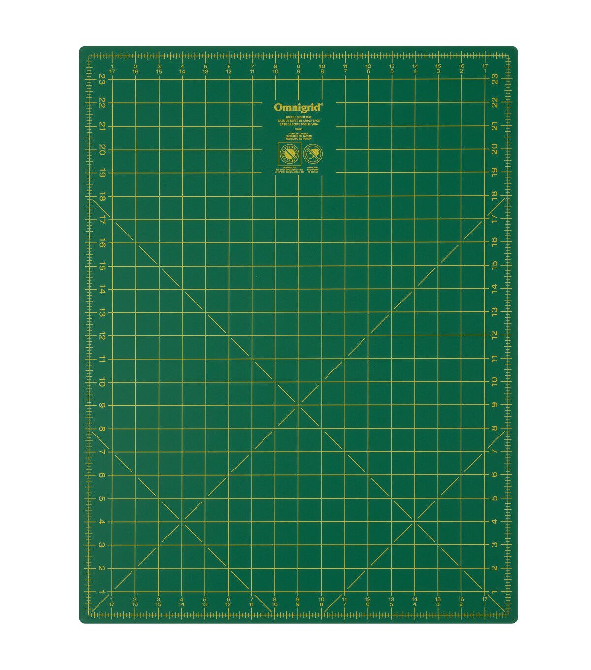 The 18" x 24" Omnigrid double-sided cutting mat is ideal for larger-scale sewing and quilting projects because it accommodates a standard folded width of 45" fabric. It is a convenient size for sewing and quilting classes, workshops and retreats. It's also perfect for spacious home studios.