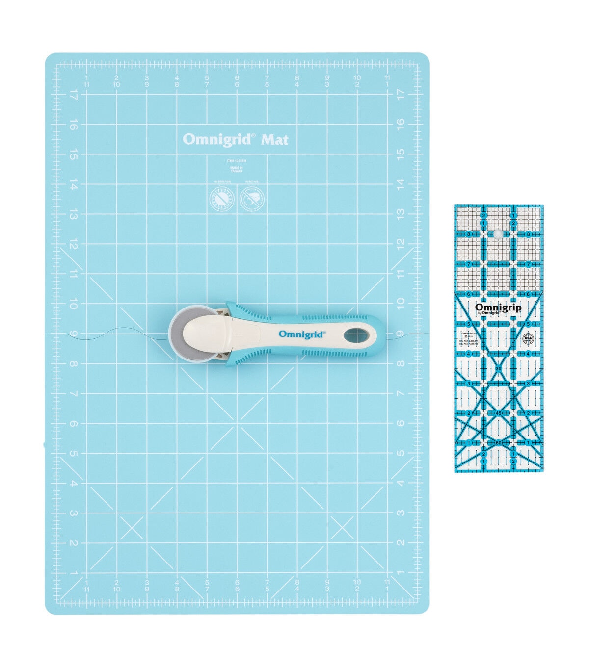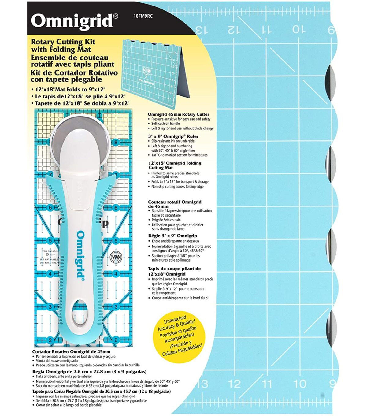 The Omnigrid Small Folding Cutting Kit will be a great addition to your quilting supplies. This kit come comes with a 12 x 18-inch folding mat, a 45 mm rotary cutter and a 3 x 9-inch Omnigrid ruler. It includes everything required by a quilter for rotary cutting.