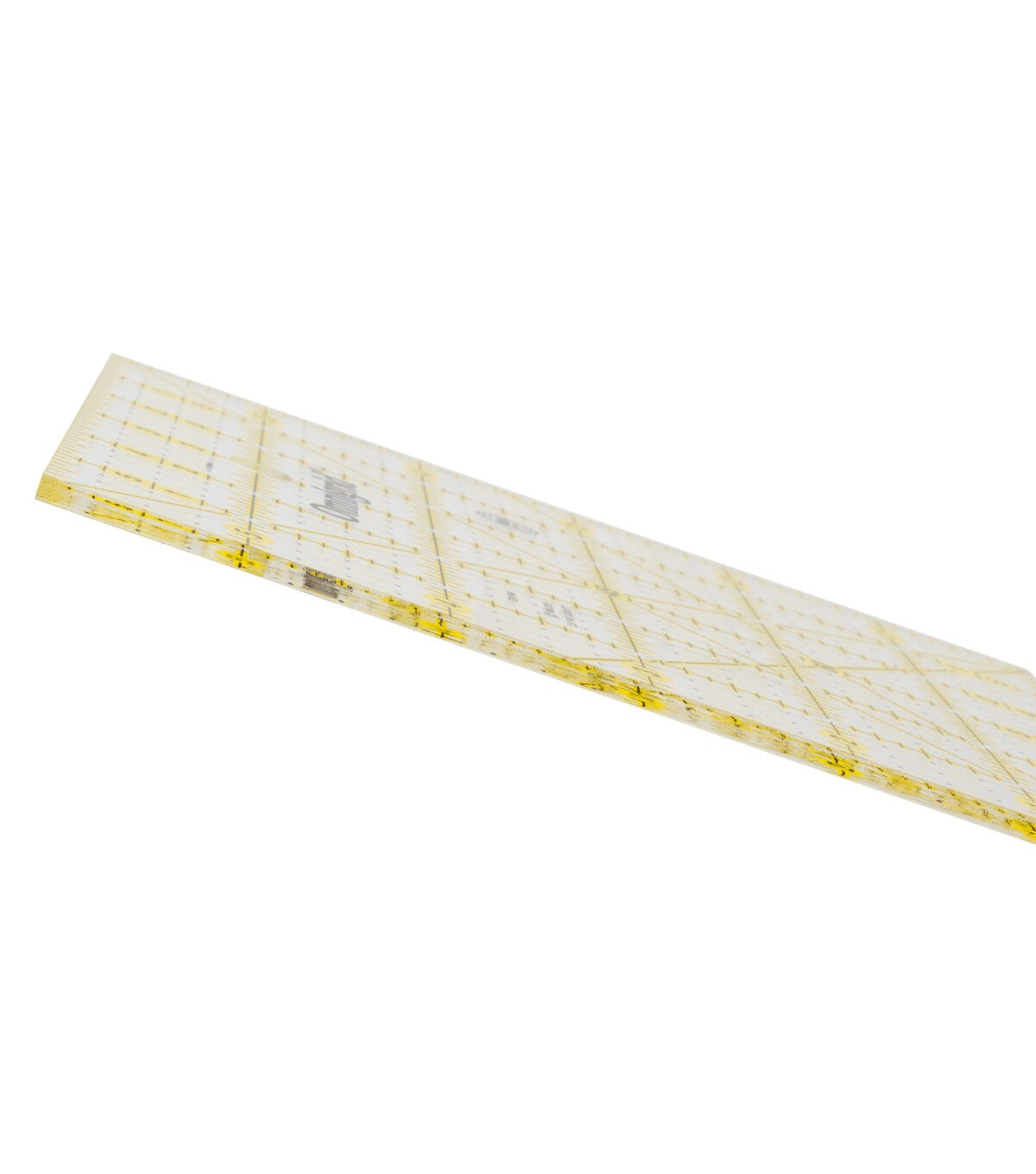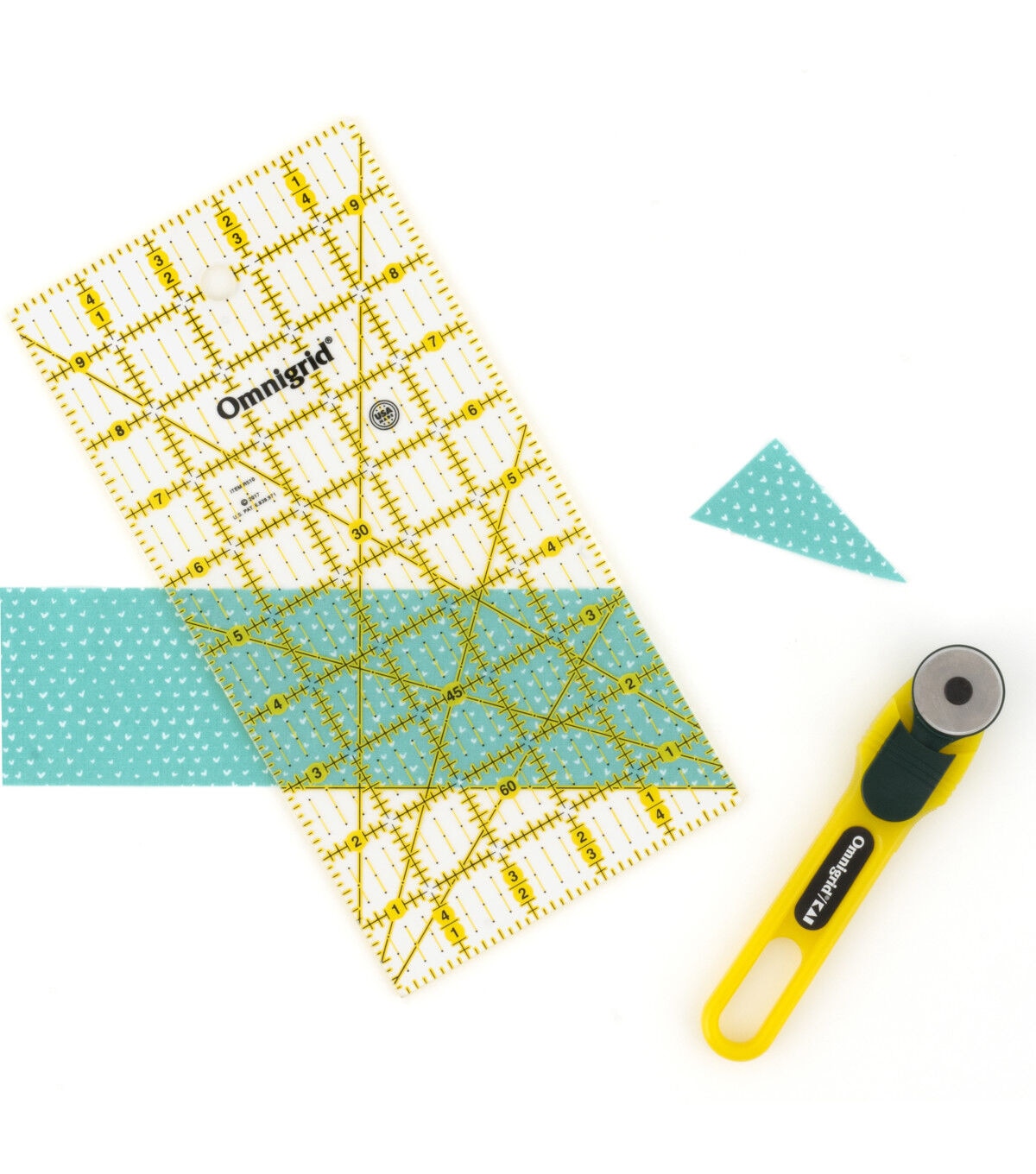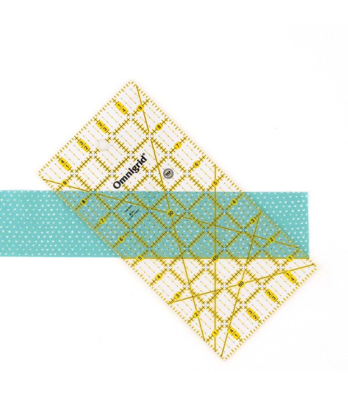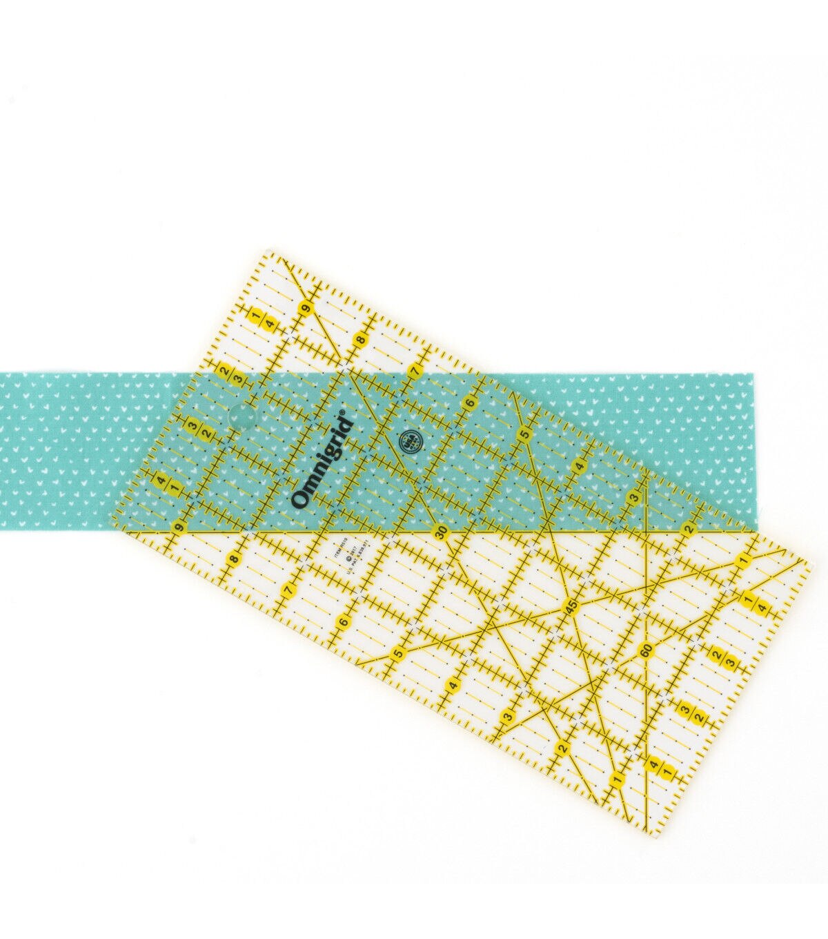 Cut strips, shapes or bias pieces when quilting, using the Omnigrid Non-slip Rectangle Quilting Ruler. This durable non-slip ruler is designed with multiple-degree angle lines for the easy pivot of 30-degree, 45-degree and 60-degree cuts. You can use this clear acrylic ruler with a rotary cutter or straight-edge blades. It is ideal for sub-cutting strips of fabric into smaller size pieces for any project.