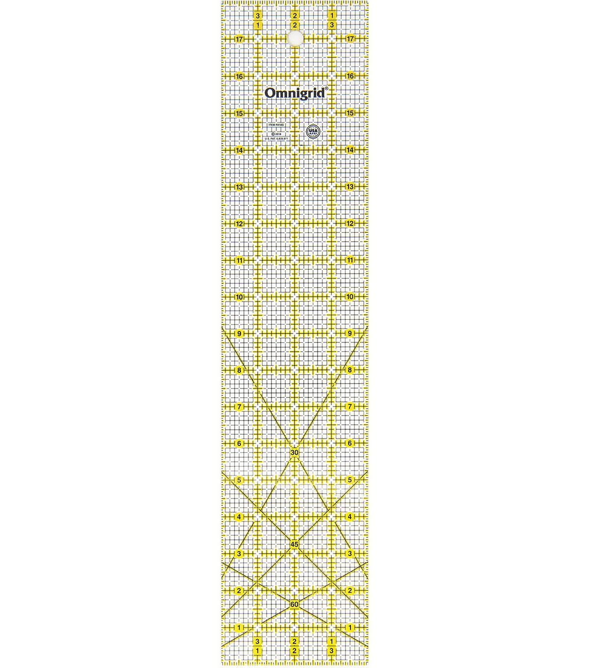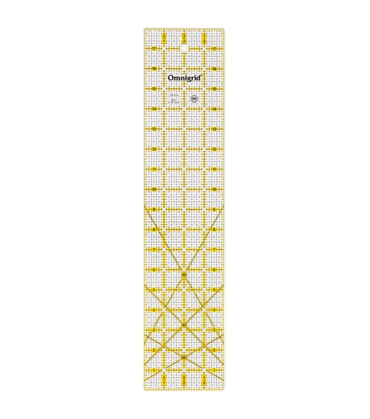 The Omnigrid 4" x 18" mini grid ruler is a versatile tool loaded with 1/16" precision markings for accurately cutting projects such as miniature quilts and Seminole patchwork.