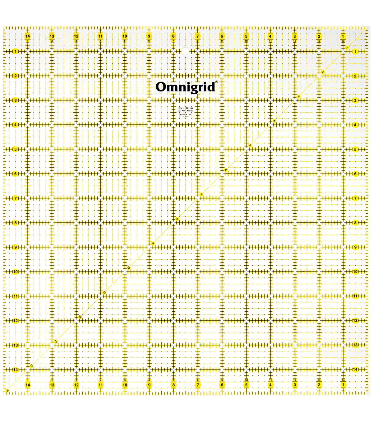 Achieve perfect fabric cuts and piercings with the Omnigrid Square Quilting Ruler and complete your projects quickly. This quilting ruler is made of high-quality acrylic plastic and sports a two-colored, laser-cut grid with 0.002-inch accuracy for easy reading on light and dark fabrics. It also comes with bias lines at the bottom and a left-handed and right-handed numbering system to prevent the turning and flipping of the ruler. You can use both sets of diagonal lines.