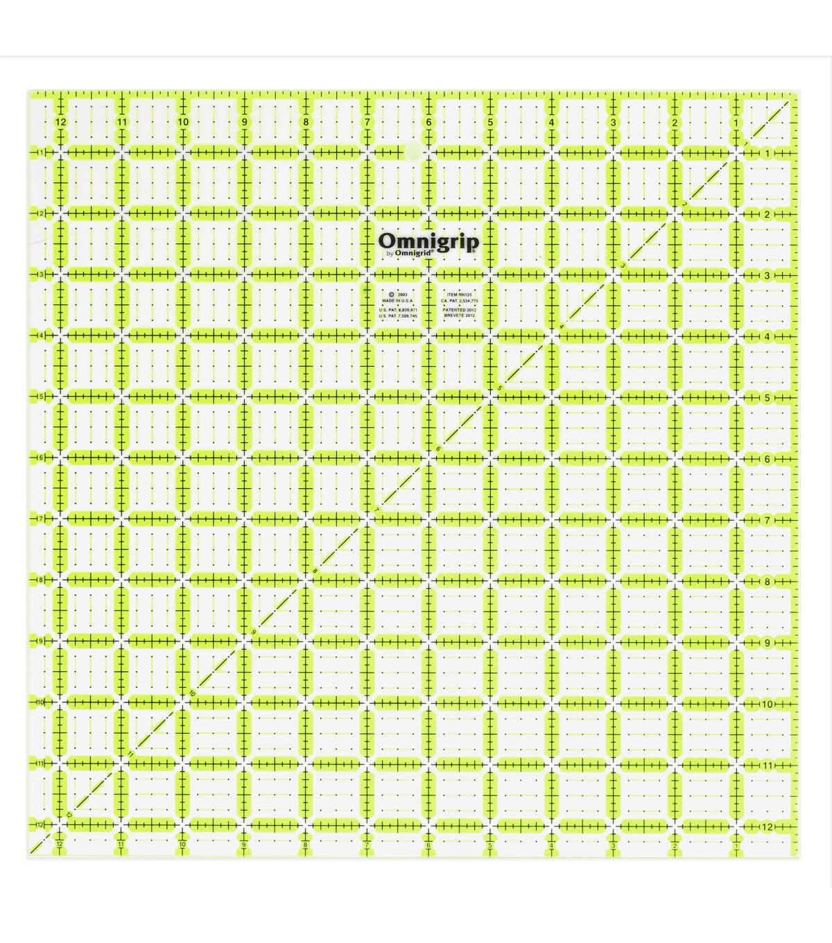 The Omnigrid Non-slip Square Quilting Ruler - Neon will make a great addition to your sewing supplies. This acrylic ruler is handy, compact-sized, and provides the same versatility and functionality as regular-sized ones. It is the ideal quilter's ruler for the secondary cutting of fabric strips into squares and shapes or for cutting fat quarters. A unique numbering and angle system set against a clear background and neon lines make this ruler easy to use. You can use the quilter's ruler with rotary cutters or straight-edge blades.
