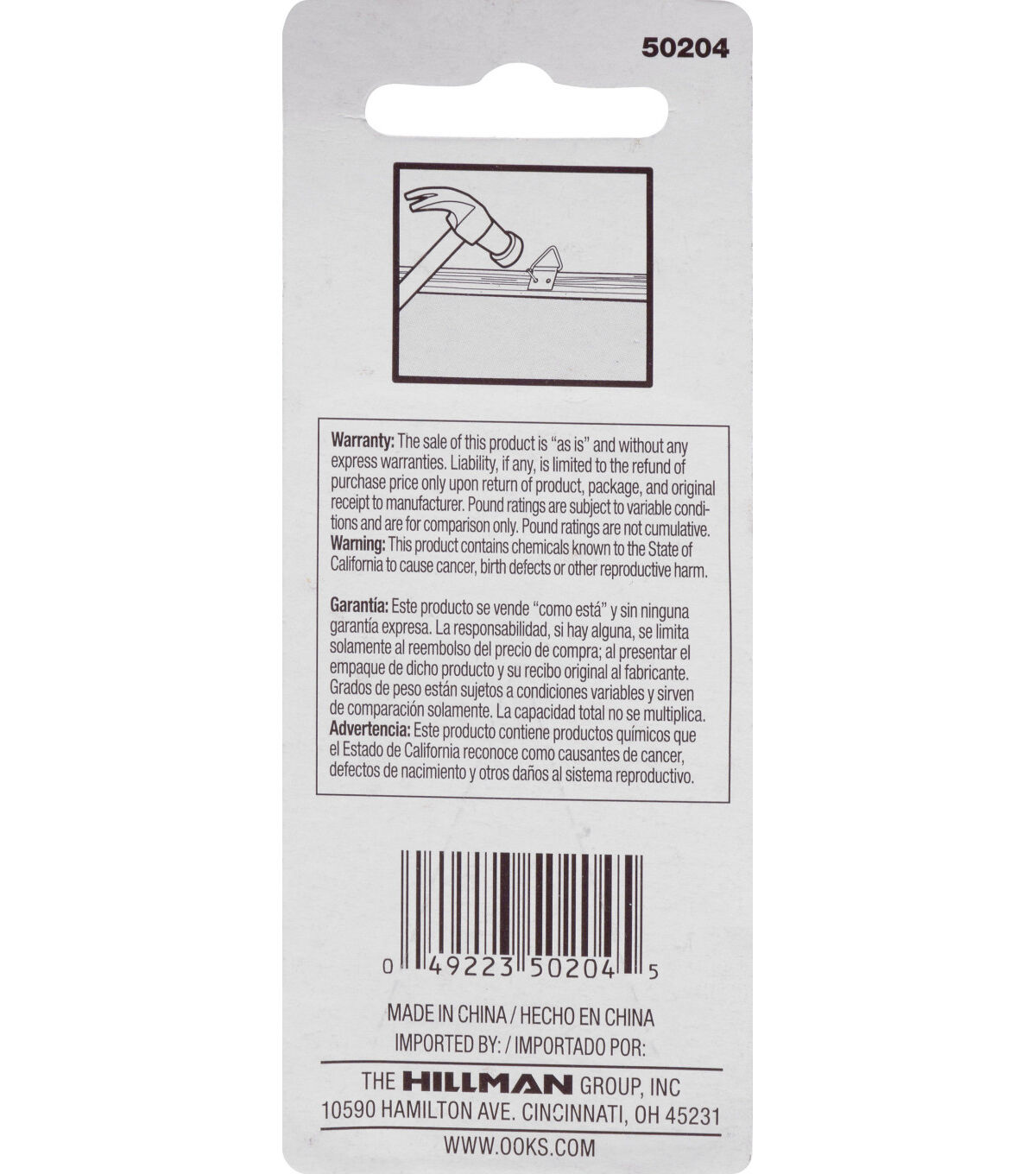 OOK Triangle Ring Hangers are great for lightweight frames. Great for pictures, clocks and more. Complete with hanging plate and hanger. Also includes hanging nails. Simply place hanger in desired location and tap nails into hanger holes. This hanger will sit flush against your wall to complete your gallery. Available in small, medium and large sizes. When using picture hangers ensure that you have the correct sized wall hanger to pair for weight ratings.