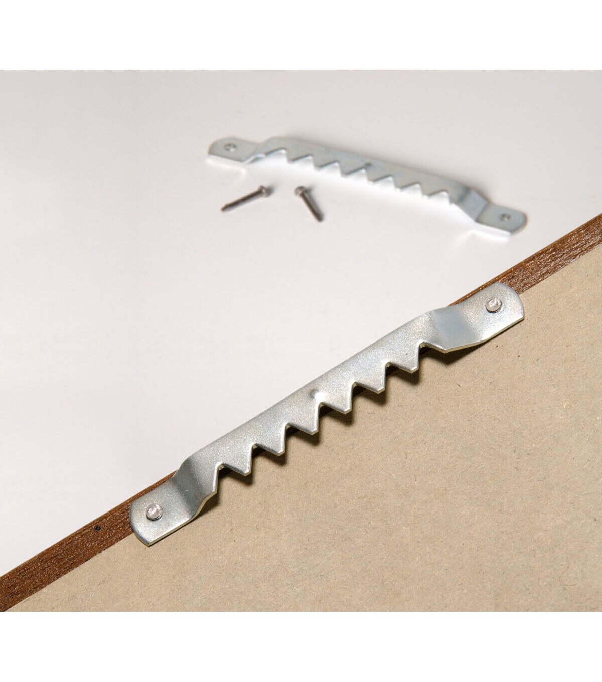 OOK Ring Hanger and Frame Back Kit is ideal for wooden back frames. Zinc finish. This kit includes keyhole hangers, Large D-ring hangers, small D-ring hangers, and sawtooth hangers. Ideal for light weight wooden frame artwork. Hangs up to 12 pieces of wall decor. When using OOK hangers please ensure you use the correct weight rated wall hanger when mounting decor.