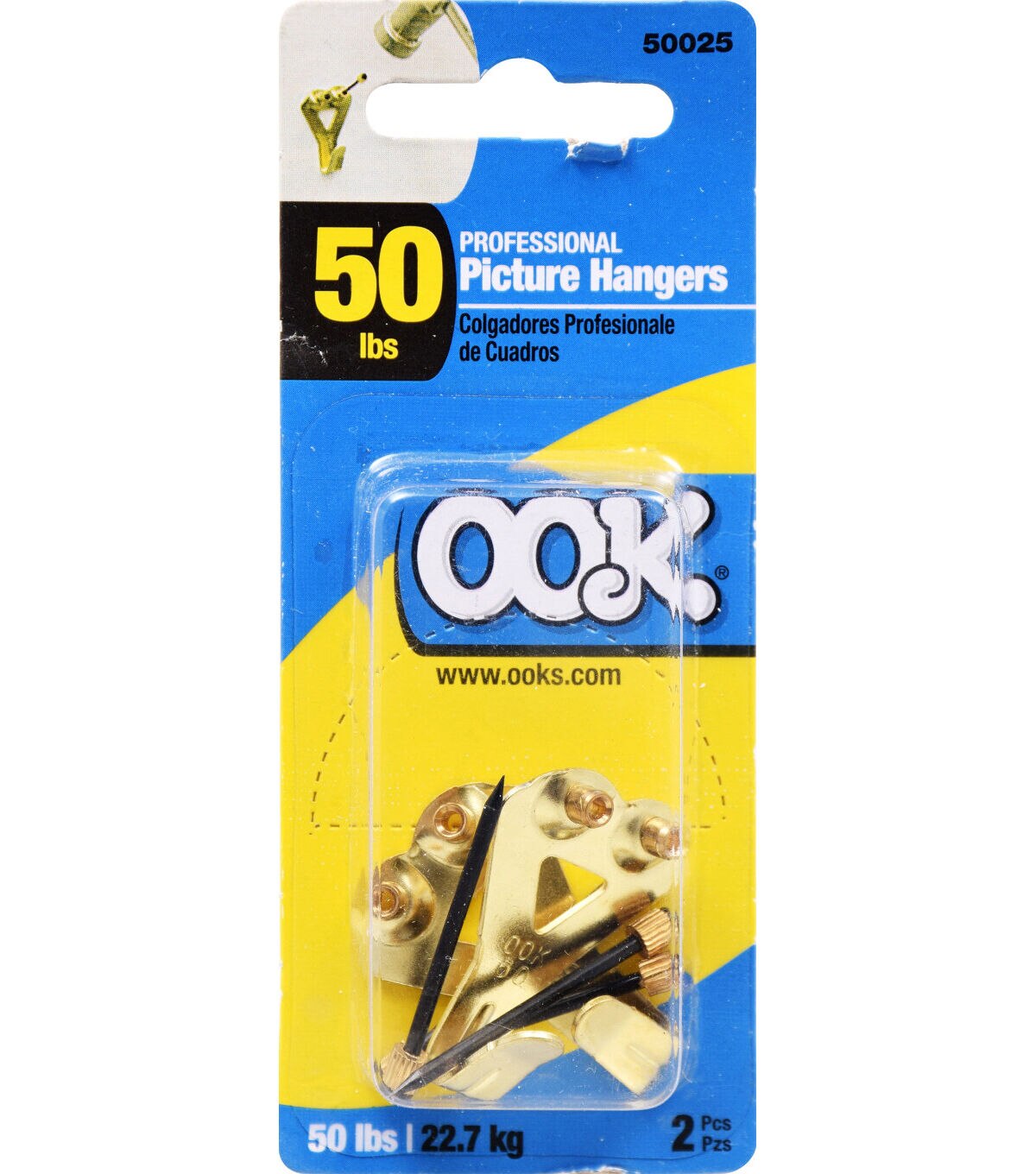 Don't fret wall damage any longer with OOK Professional Picture patented design wall hanger. This antique brass finished hanger absorbs shock as it hangs your frames. Great for wood, sheetrock, drywall, and plaster. Repositioning is easy. Wall protector sheet hangers have an adhesive back. Includes OOK's Premium Professional Blue Steel Nails with each hanger. Weight bearings are testing in studs. Chose the size that best fits your needs.