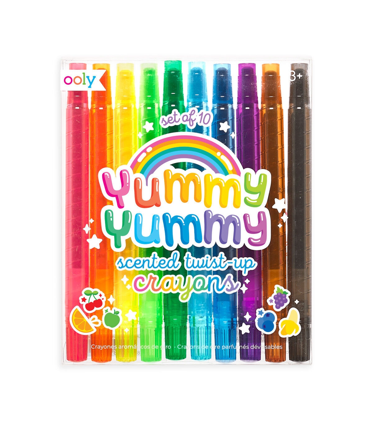 Yummy Yummy scented twist up crayons come with 10 colored crayons that make coloring a delight. The crayons are encased in a durable barrel; twist up to reveal more crayon. It’s a great way to keep hands clean from coloring and make sure that your crayons are safe from breaking. Each of the 10 colored crayons has an amazing scent too.