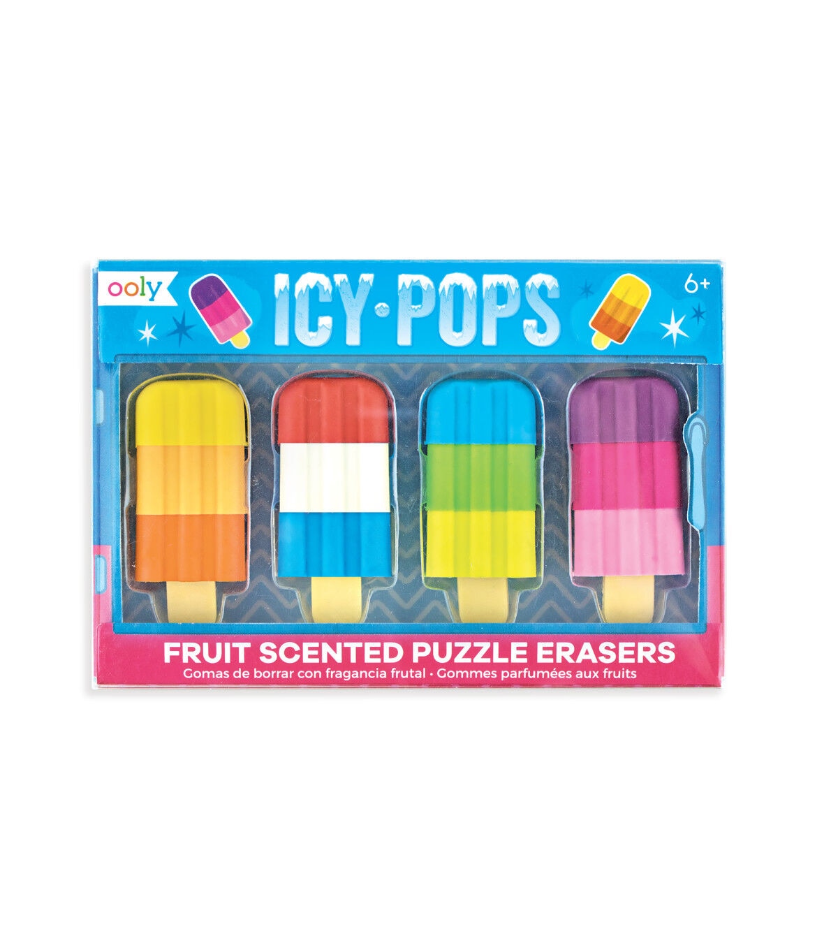 The Icy Pops Puzzle Erasers are 4 popsicle shaped erasers that you can mix and match and create all sorts of cute pencil eraser color combinations.