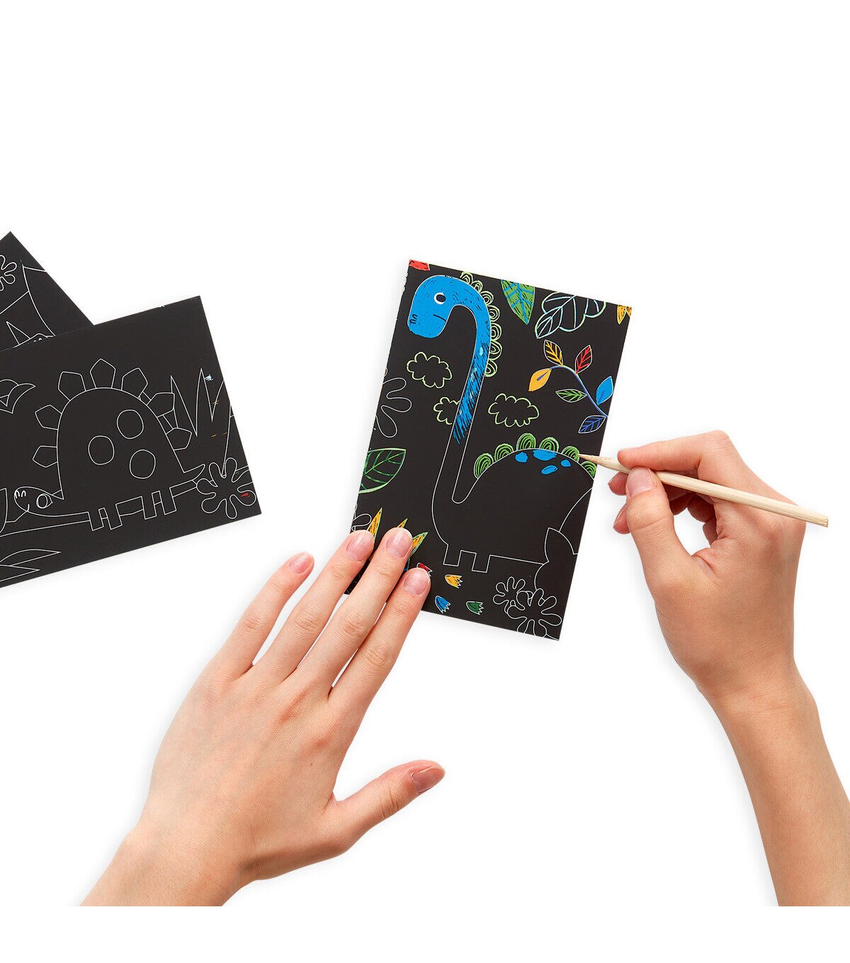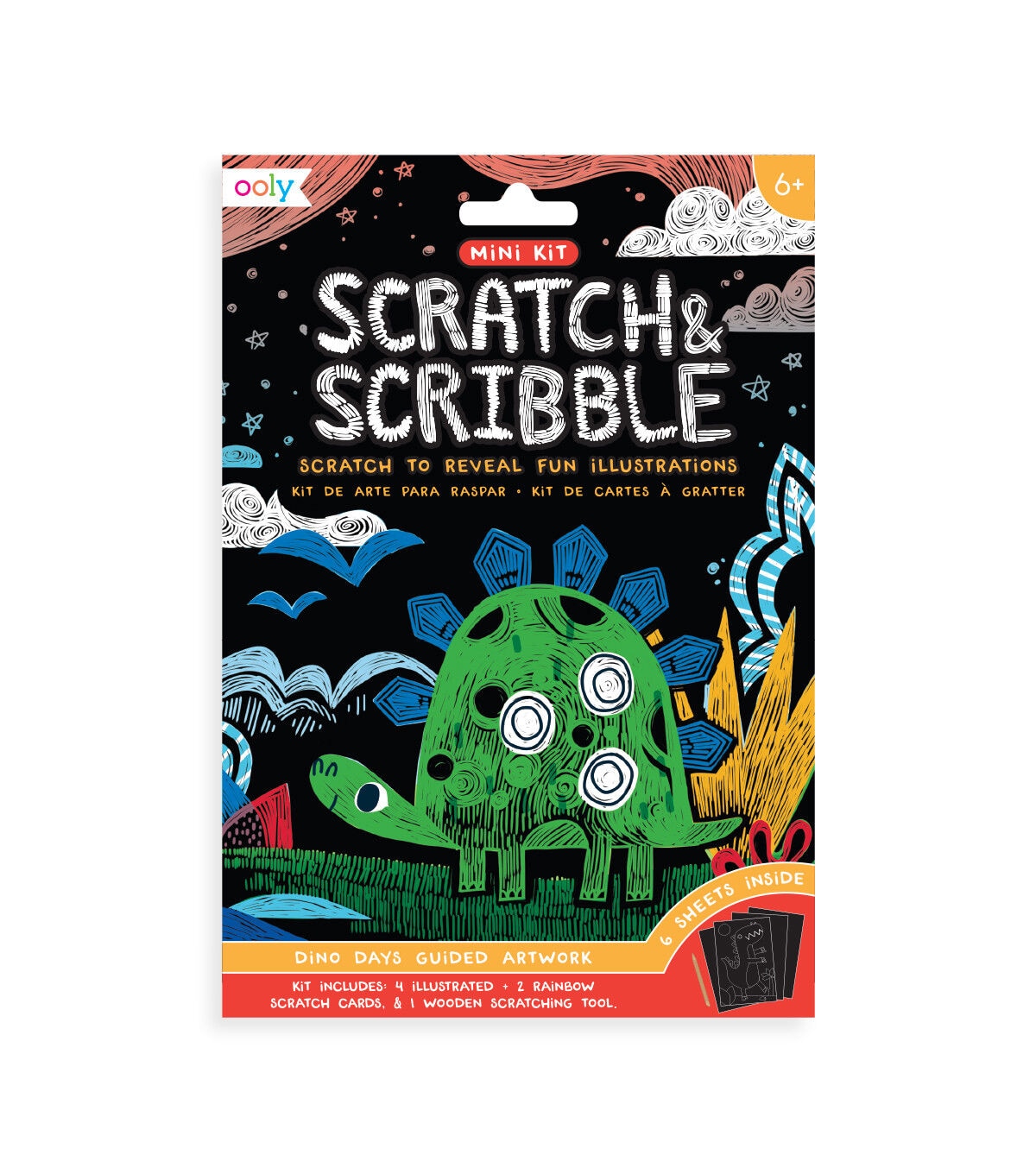 - Travel sized scratch art kit with dinosaurs
