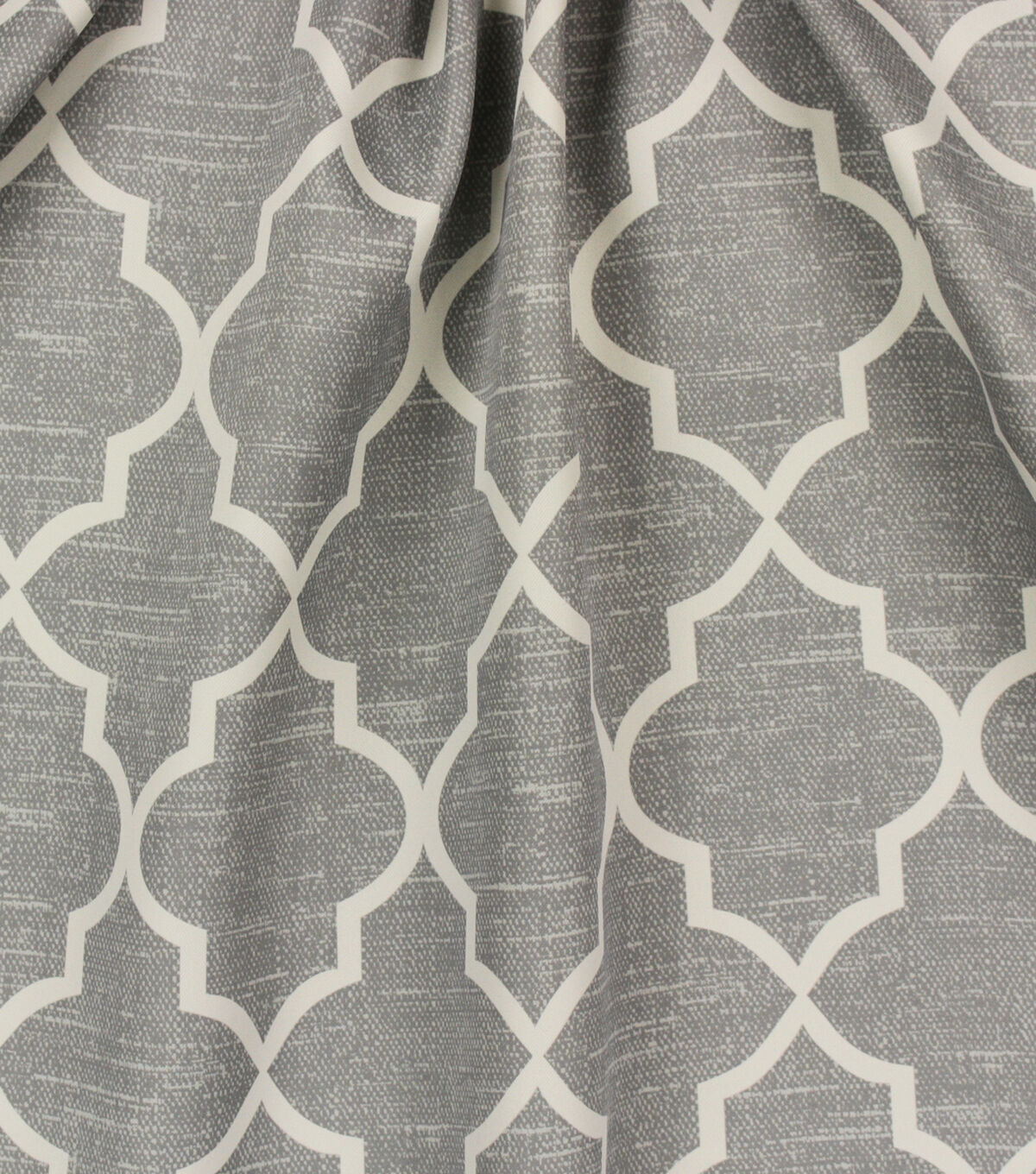 Save energy, while controlling the amount of light in your home, using this Optimum Performance Room Darkening Fabric-Gray Geometrics. It's the latest addition in window performance technology. This gray room darkening fabric is made of 100% polyester and doesn't require a liner. It insulates and darkens, while allowing you to have control over the light entering from your windows. Its lattice print will add charm to any home decor style.
