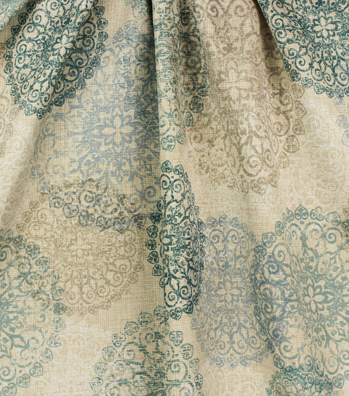 Insulate and darken any room using this Optimum Performance Room Darkening Fabric-Peacock Medallion. Made of 100% polyester, it's the latest addition in window performance technology, and doesn't need a liner. Save energy, while controlling the amount of light in your home in one easy step, using this room darkening fabric. It features a beautiful medallion print for visual flair.