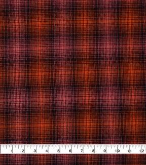 Orange Blurred Plaid Brushed Cotton Shirting Fabric