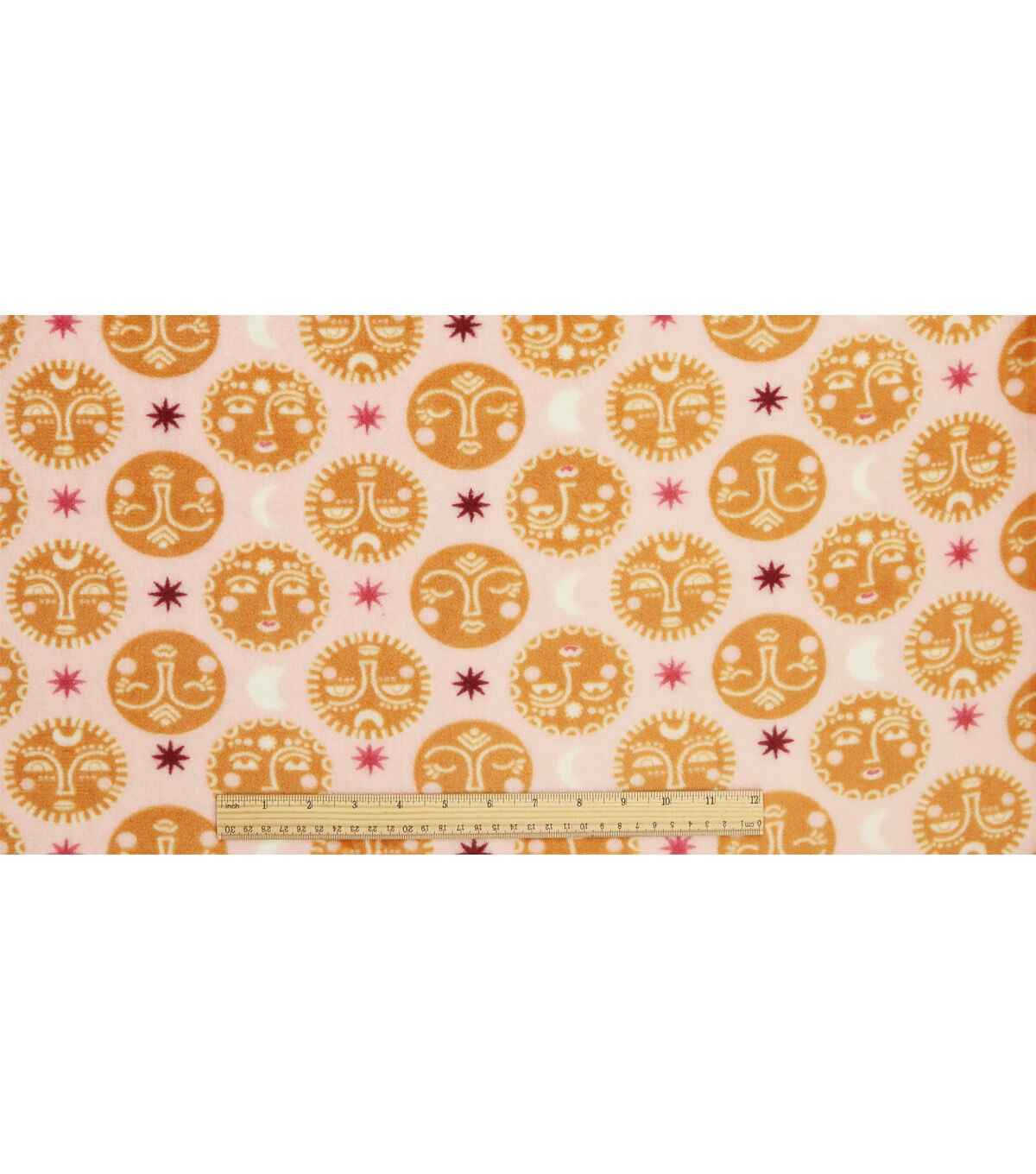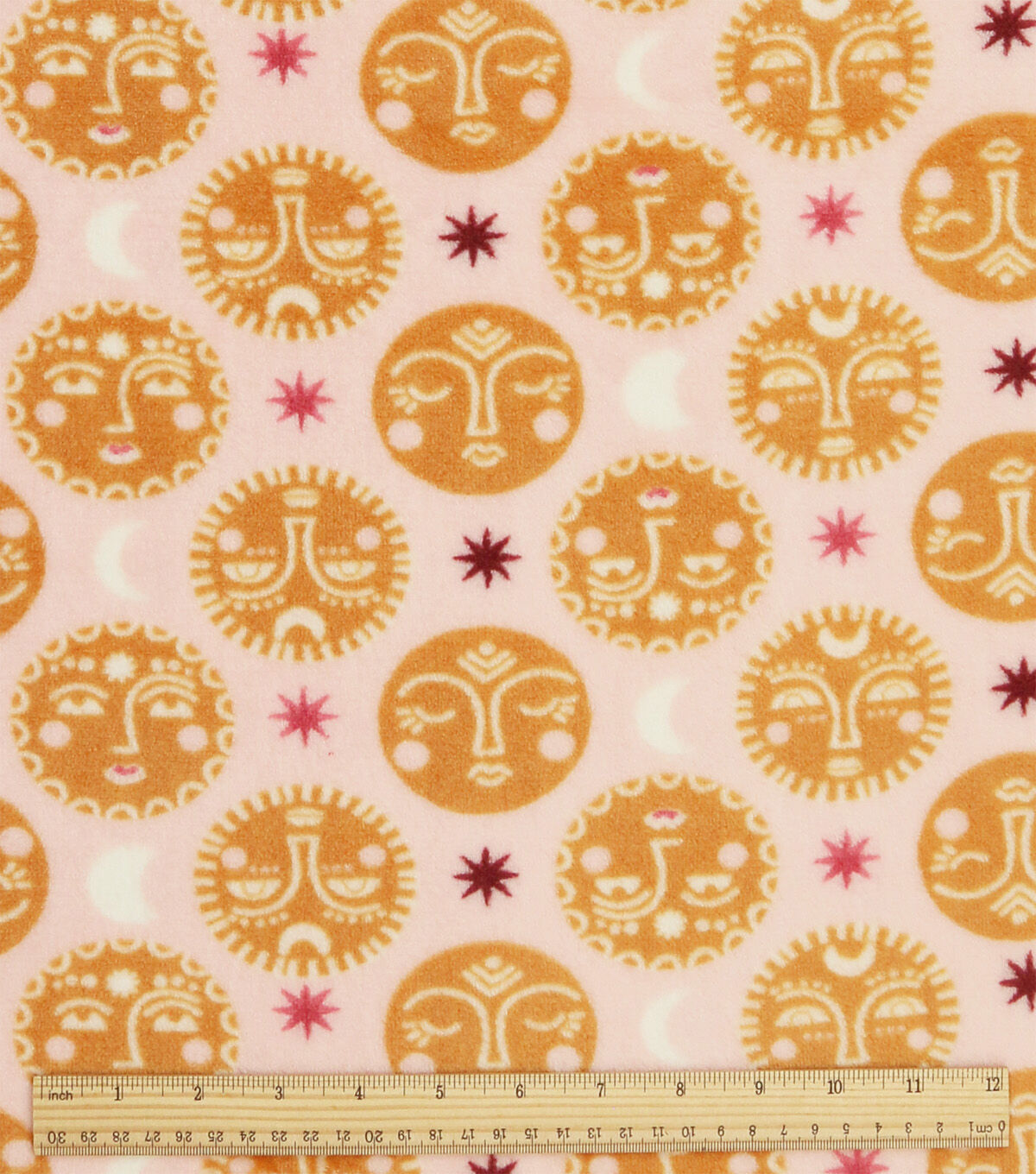 Orange Celestial Faces Sew Lush Fleece Fabric