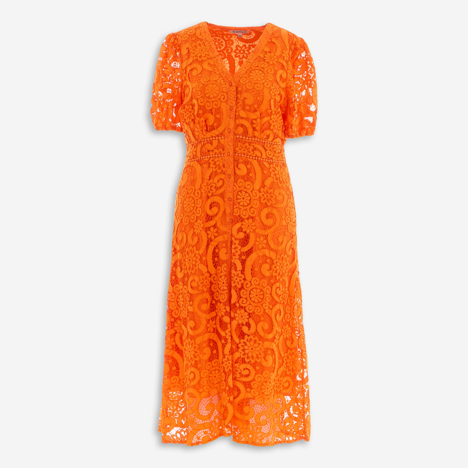• Orange Lace Midi Dress