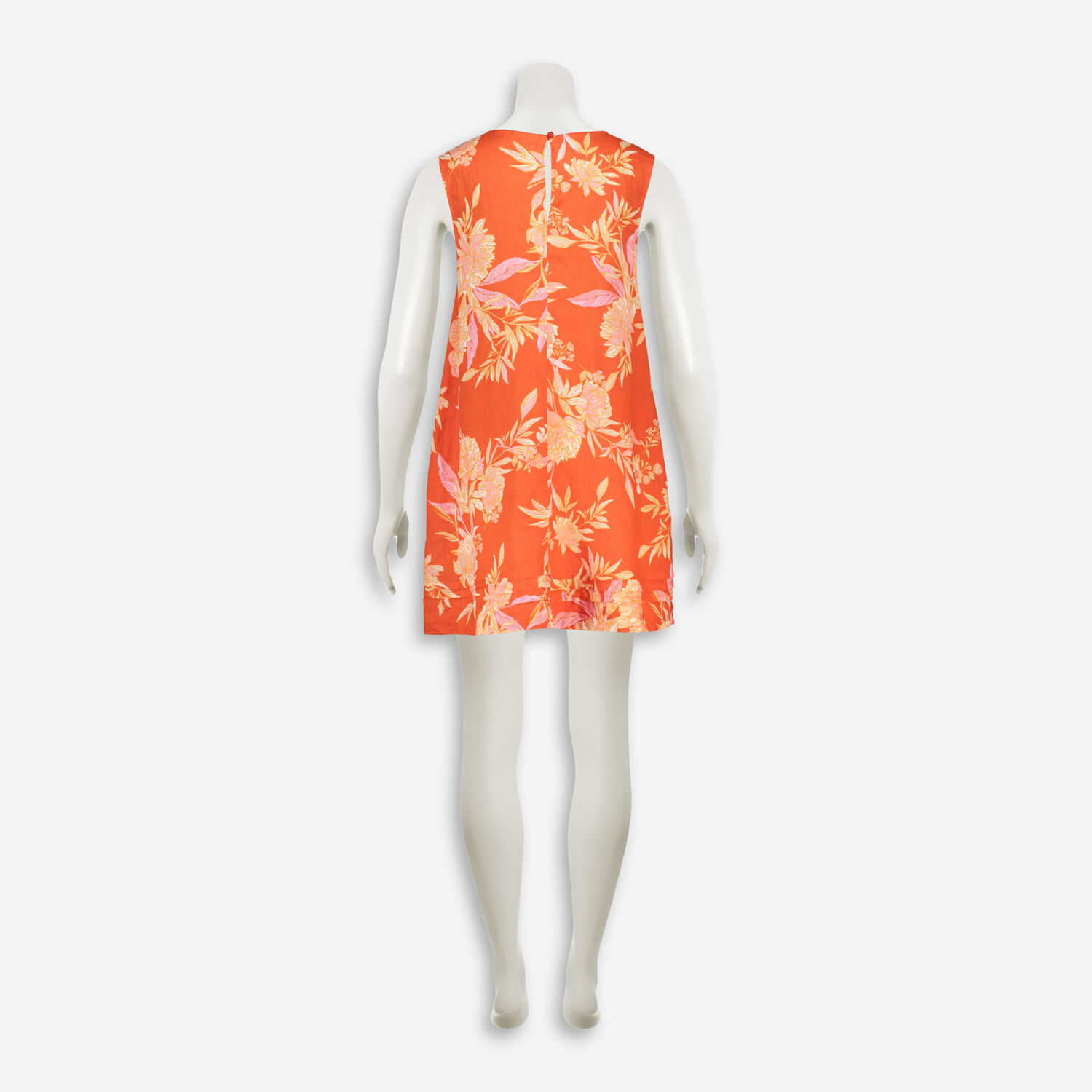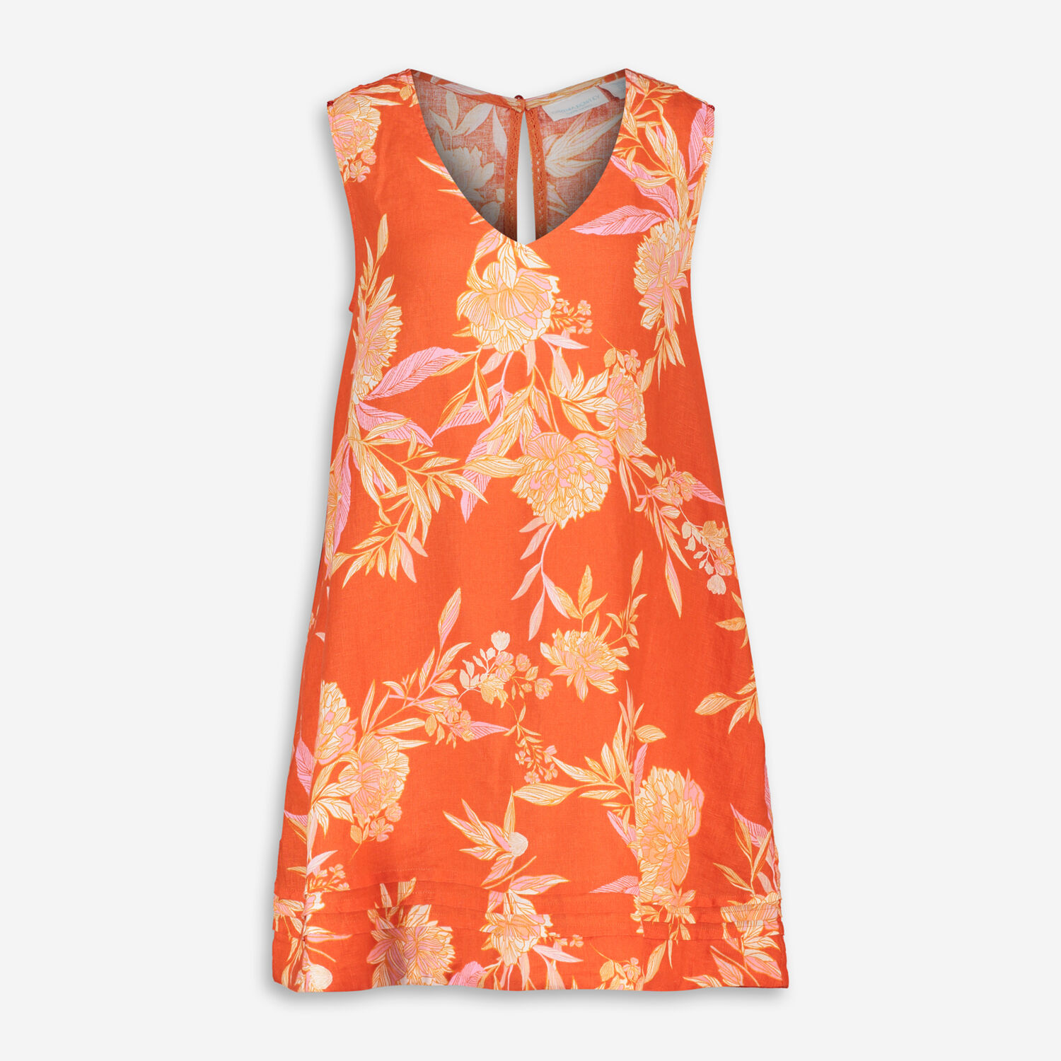 • Orange Linen Floral Mini Dress