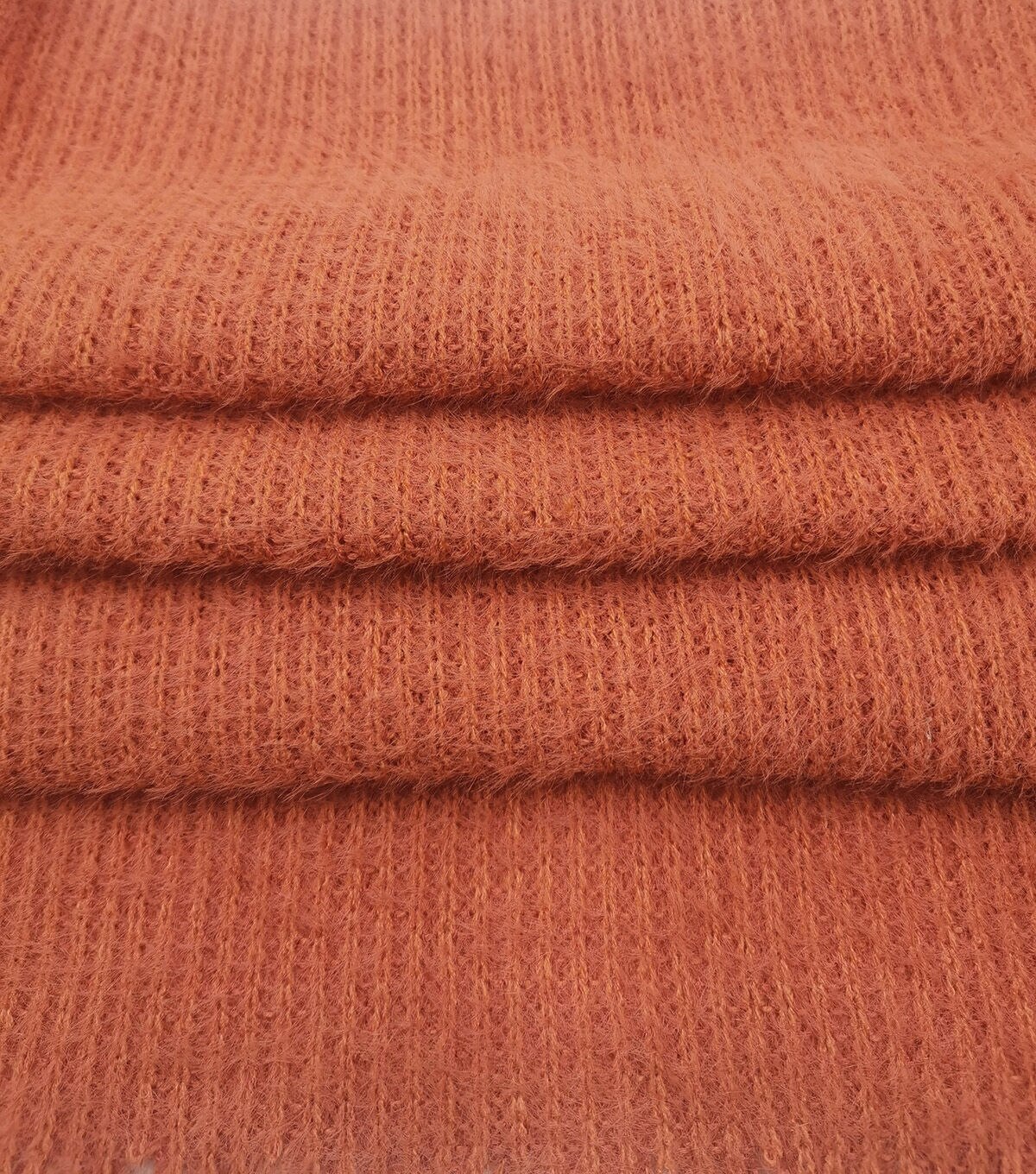 • Orange Plush Rib Knit Fabric