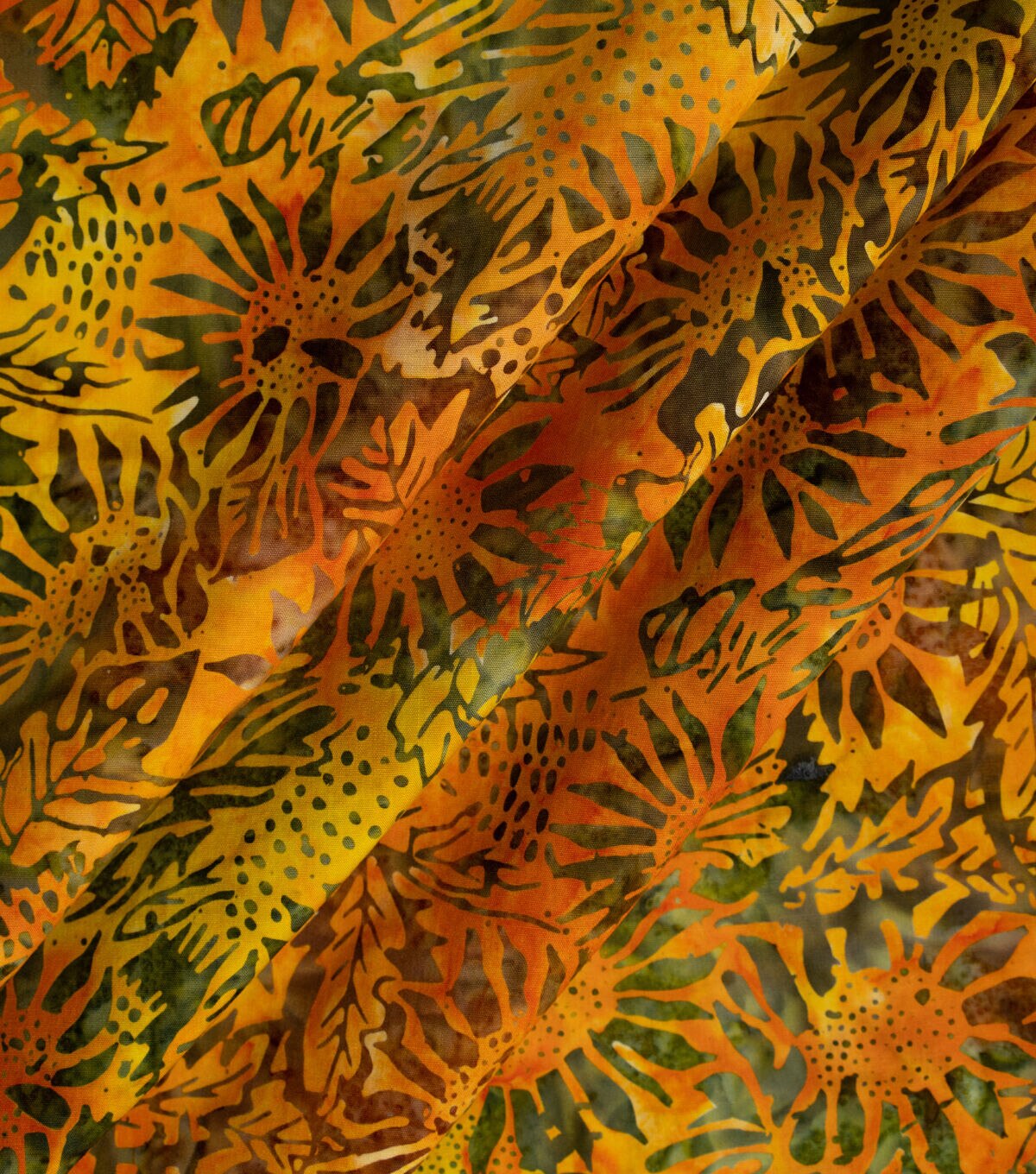 Orange & Yellow Sunflower Garden Batik Cotton Fabric