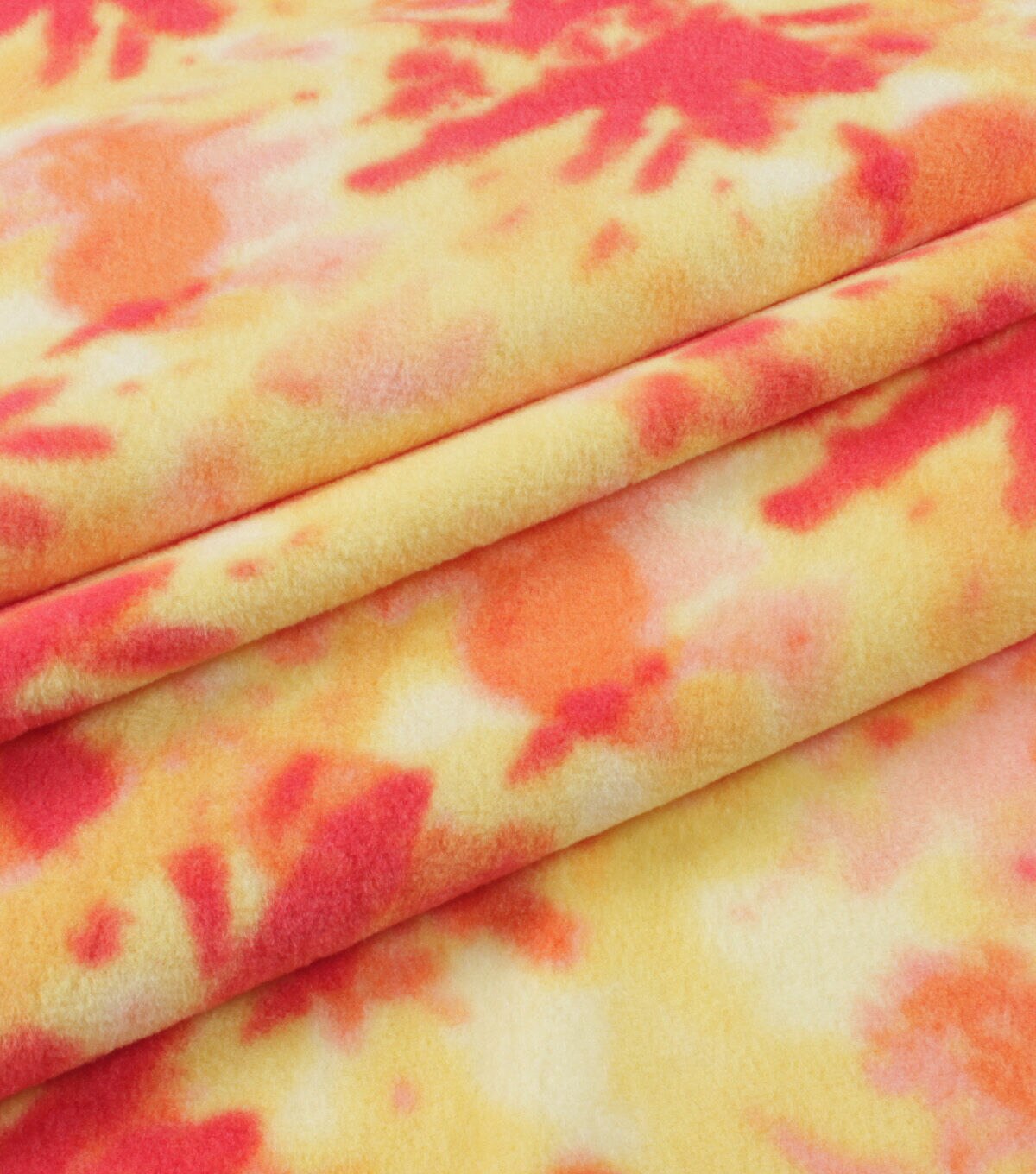 Orange & Yellow Tie Dye Anti Pill Fleece Fabric