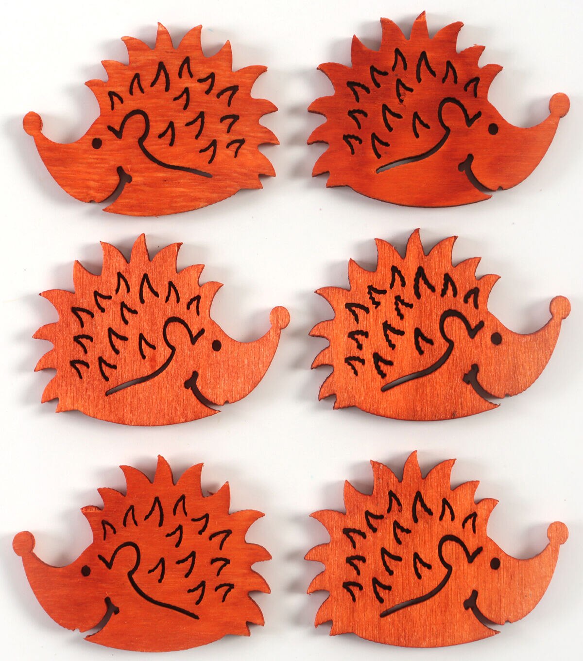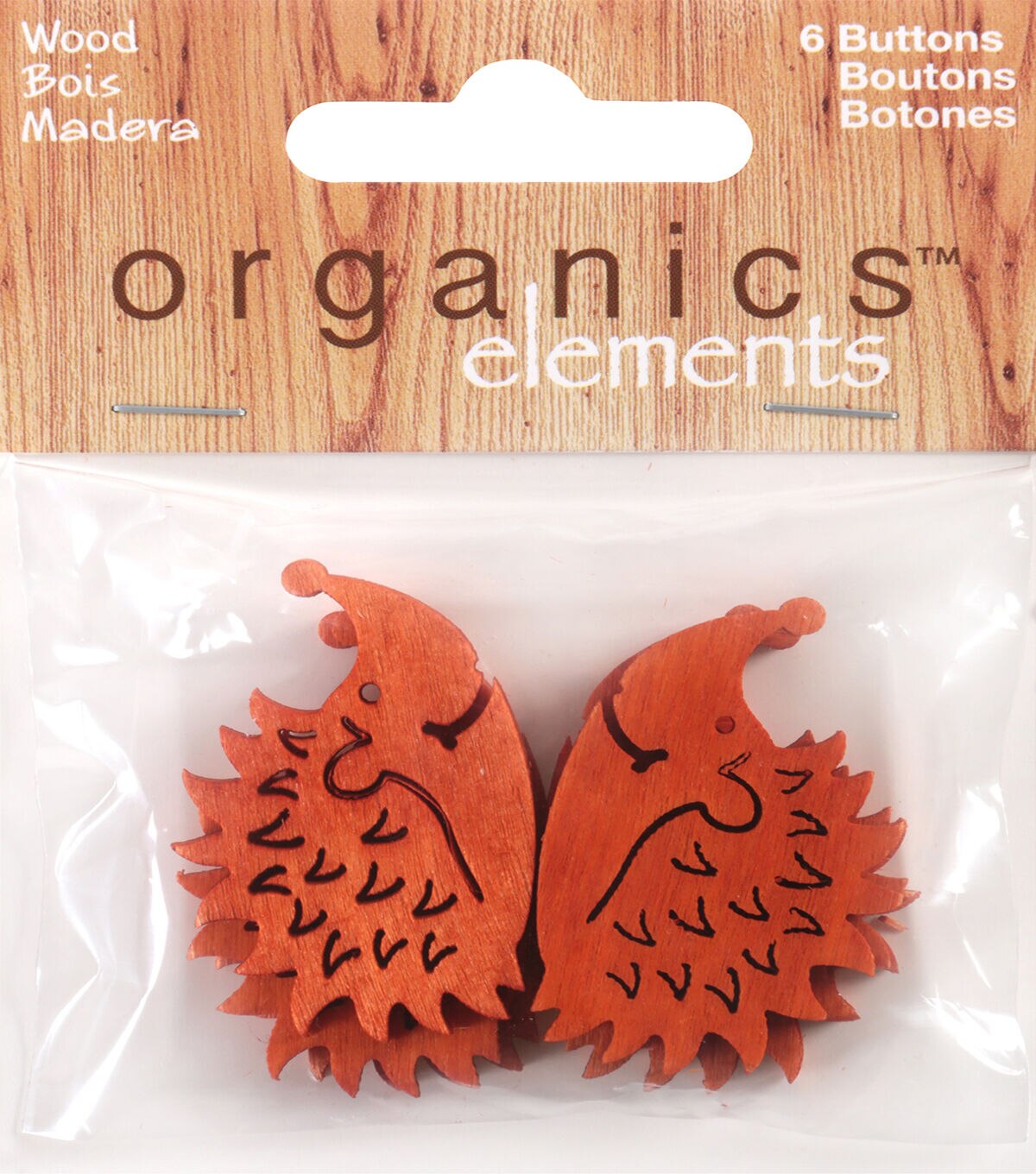 Lend a unique look to your art and craft creations with the Organics Elements Hedgehog Buttons. These buttons are shaped like hedgehogs and sport a bright shade. You can team them with coordinating buttons in the shapes of owls, sold separately, and stitch them onto an embroidered piece of fabric to create a lovely wall hanging.